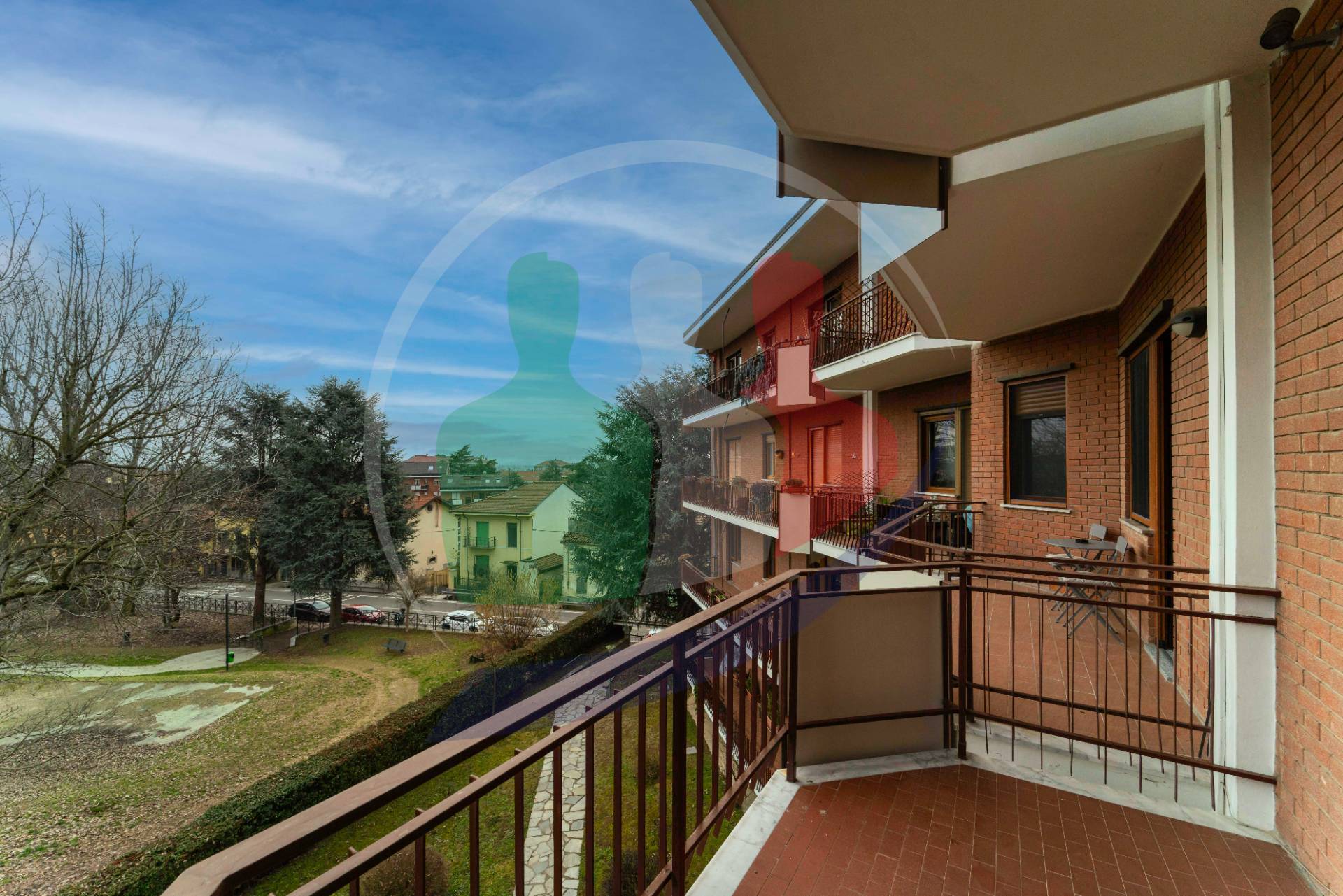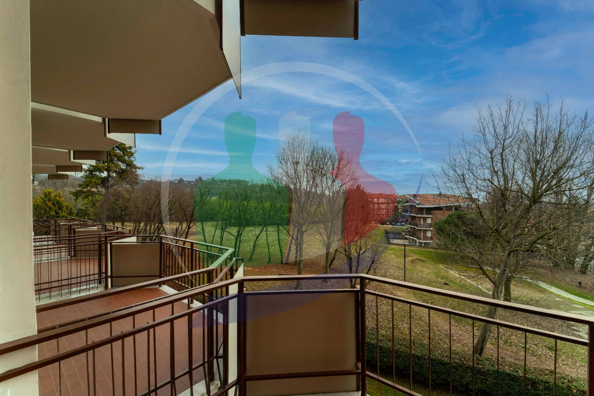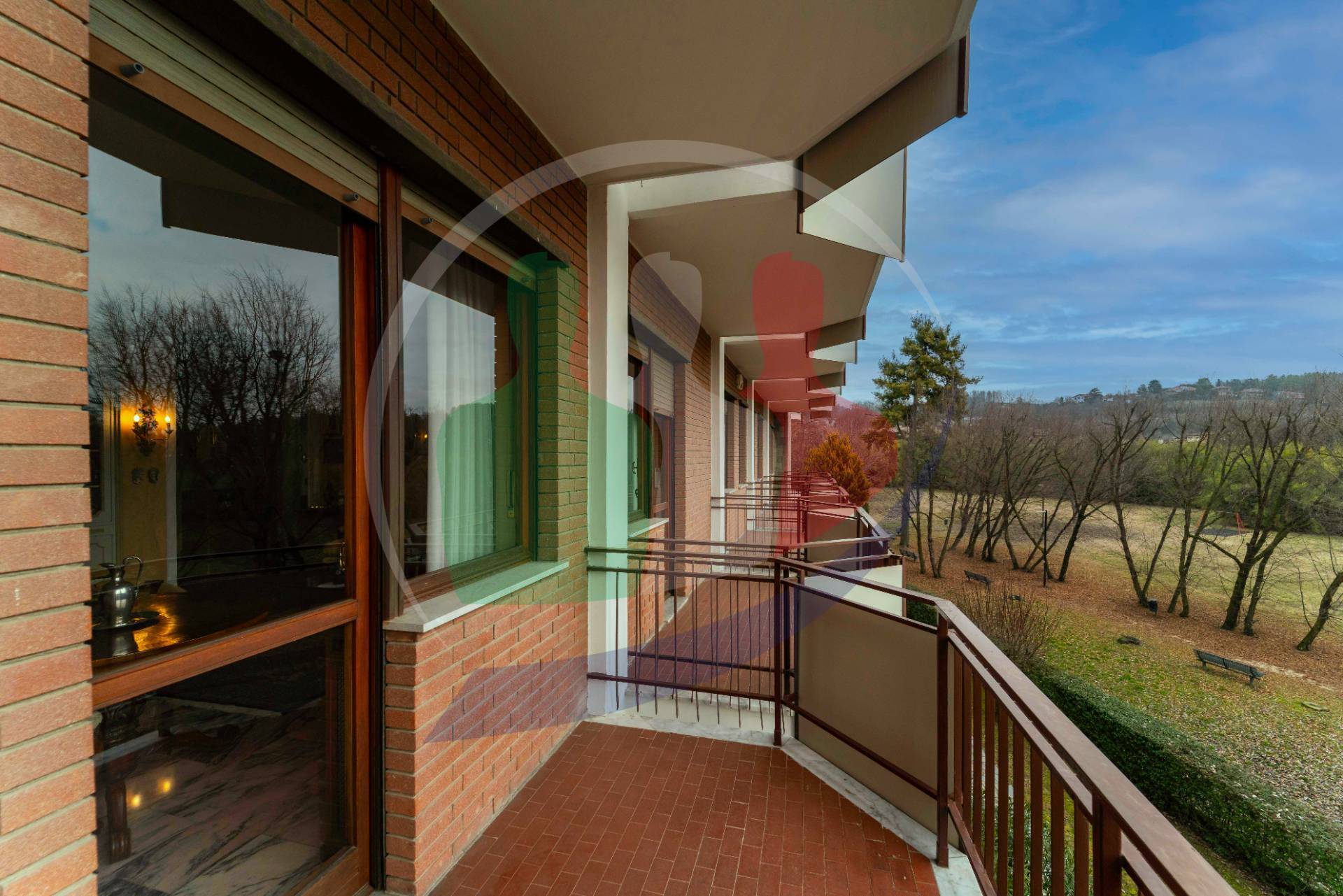 Da questo lato la vista aperta e si affaccia sul giardino condominiale e sul parco circostante.