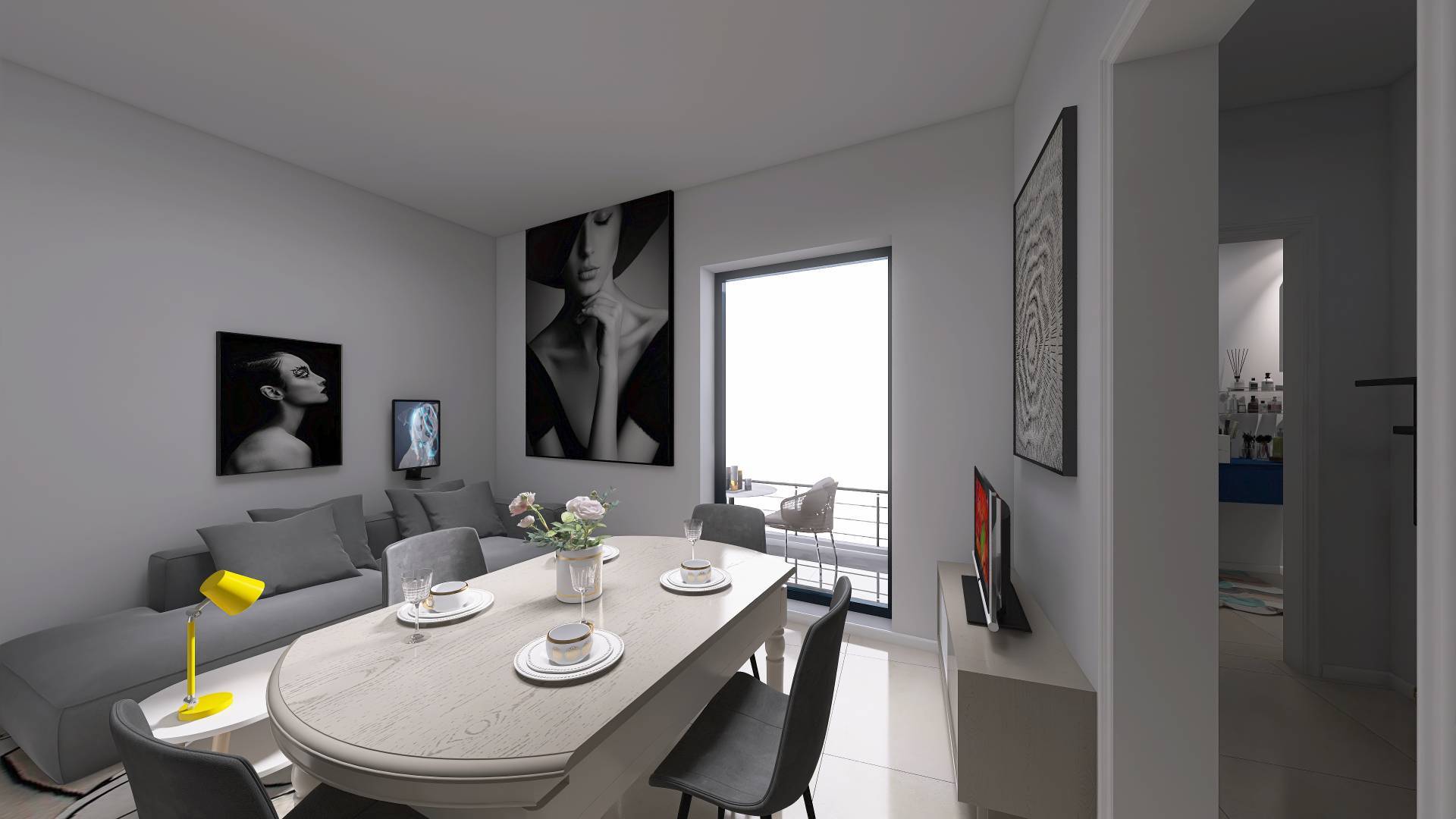 Lappartamento 8, situato al secondo piano con ascensore un bilocale composto da: soggiorno con angolo cottura con accesso a terrazzino di 3,62 mq, camera matrimoniale, antibagno e bagno finestrato.