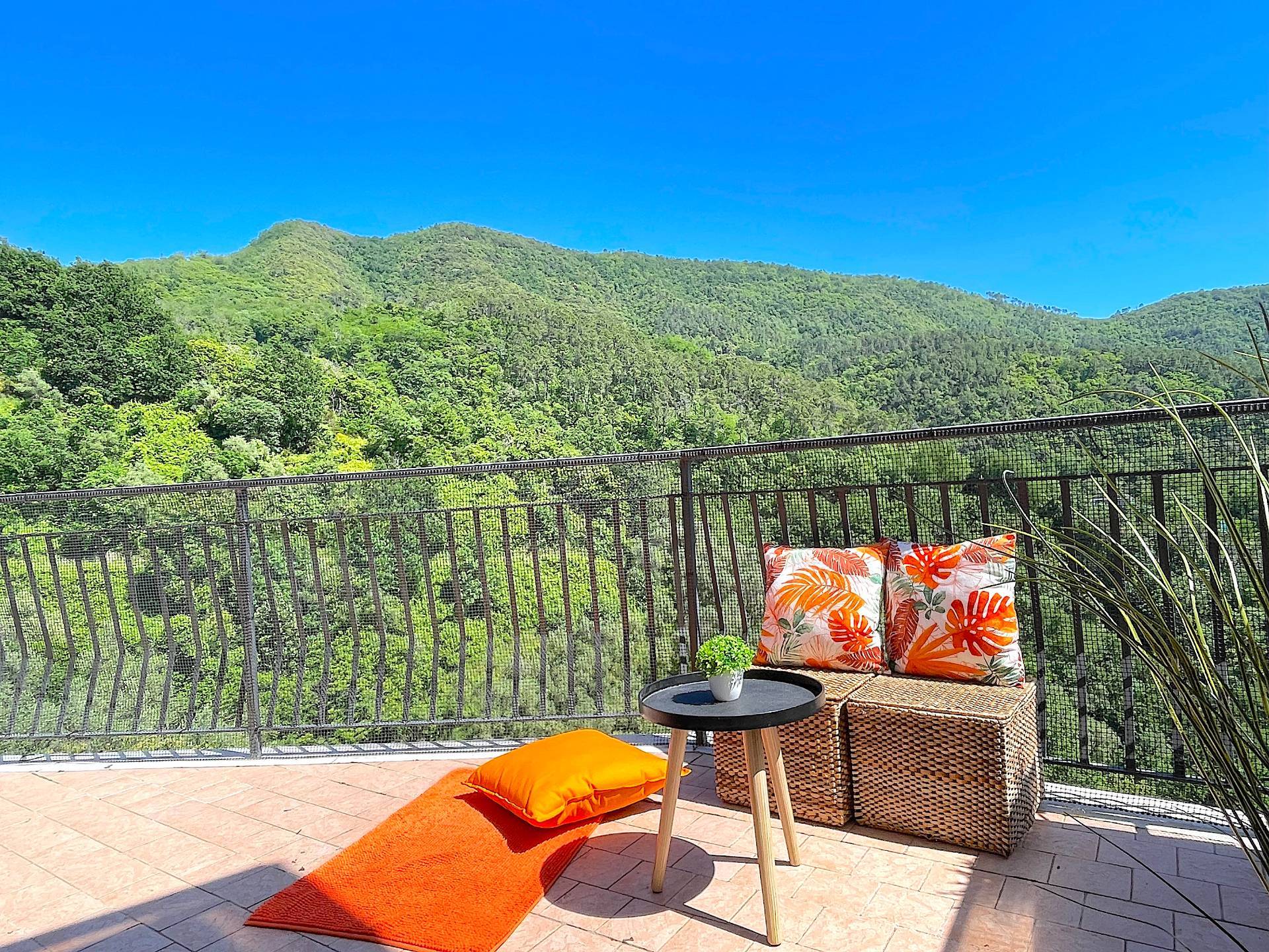 Un terrazzo di 10 mq al piano primo adiacente al soggiorno vi regaler cene al chiaro di luna con scorcio vista mare, un balcone di 4 mq al piano secondo adiacente alla camera matrimoniale per godervi ogni momento di relax con vista sulle verdi colline circostanti.
