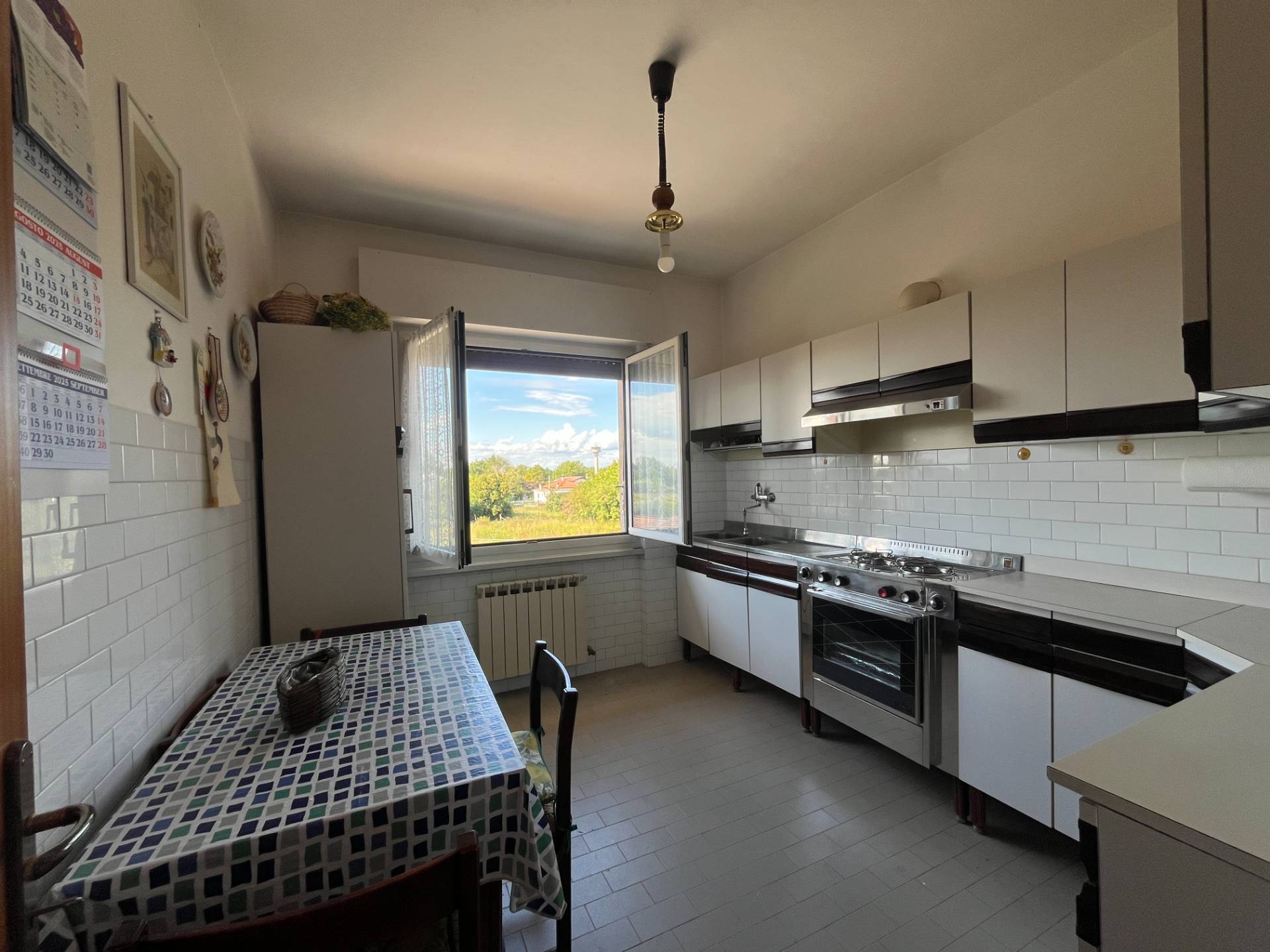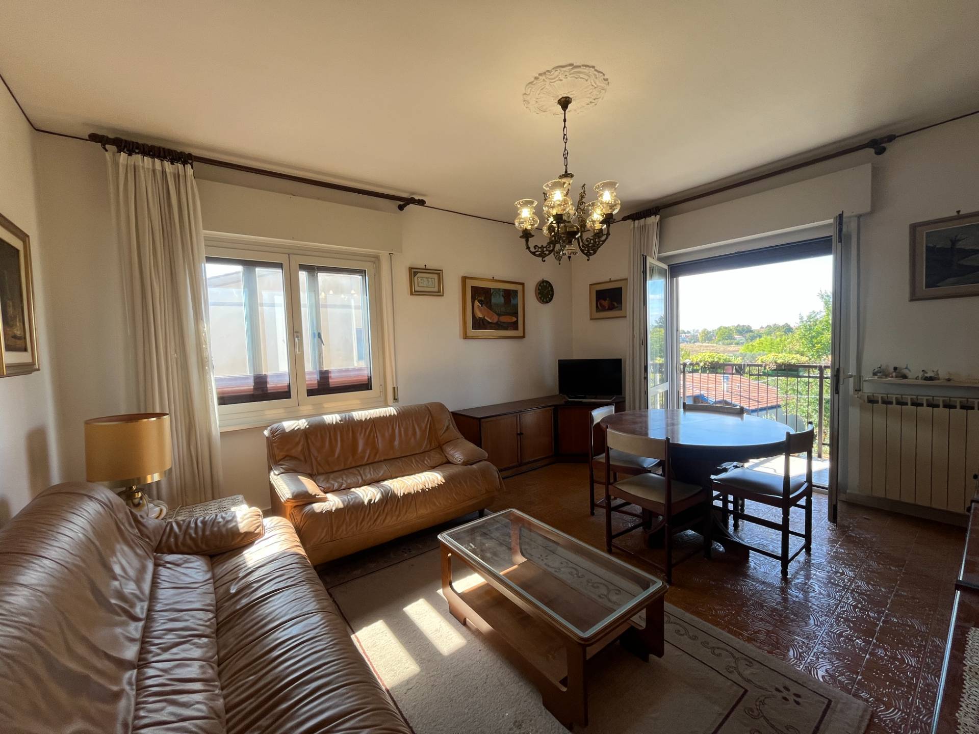 In bellissima zona residenziale molto tranquilla, proponiamo appartamento al secondo piano (ultimo), ottimamente esposto a sud, luminosissimo, si compone di ingresso, cucina abitabile, ampio soggiorno con balcone, due ampie camere da letto, bagno con vasca e uscita alla verandina, cantina e garage.