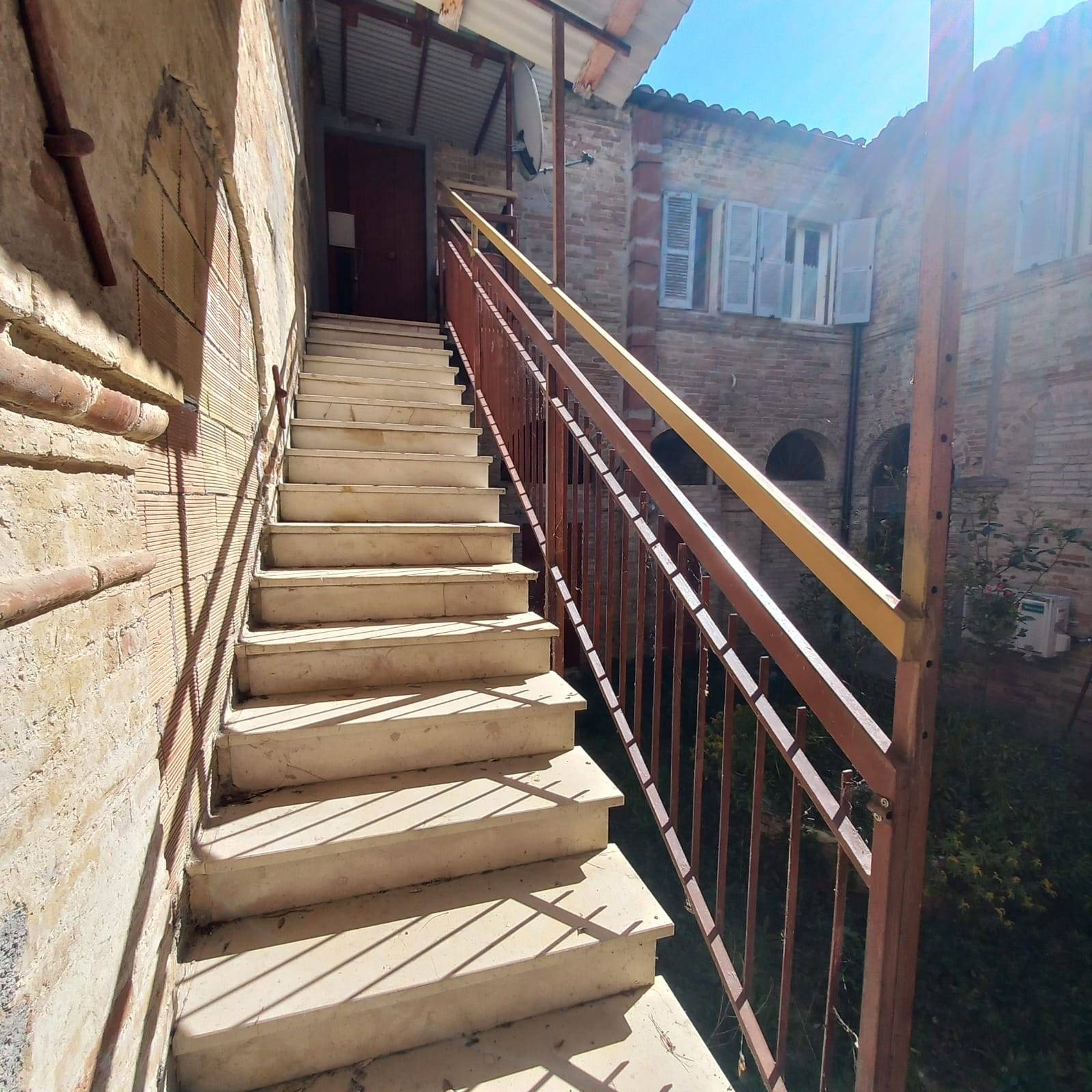 Dal cortile, tramite una scala aperta, accedo alla porta dell'appartamento.