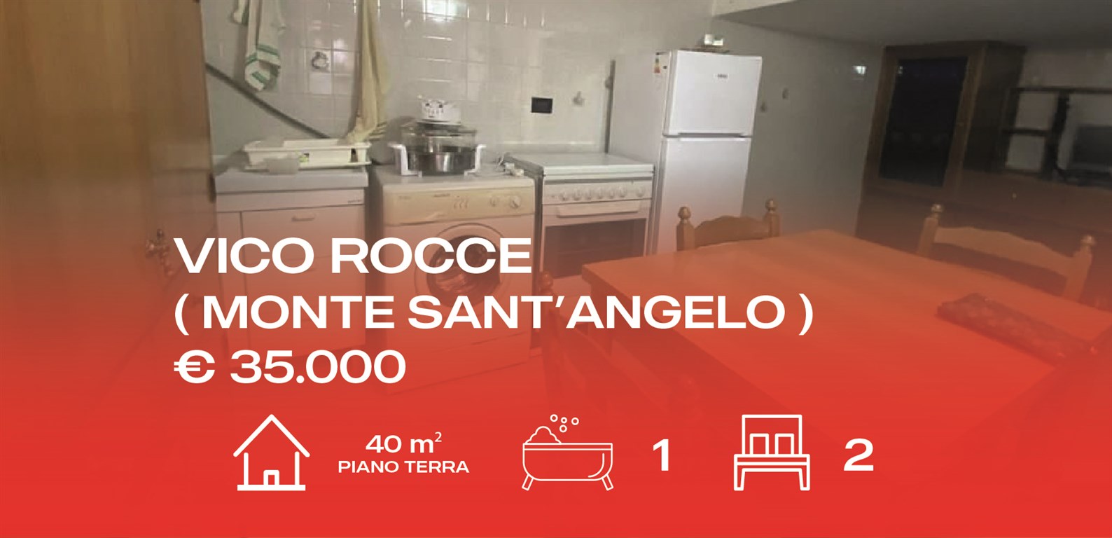 MONTE SANT'ANGELO Vico Rocce VI propongo la vendita di un piccolo bilocale a Monte Sant'Angelo , al piano terra con tavernola a zona giorno con camino. Libero subito Tuo ad Euro 35.000,00.