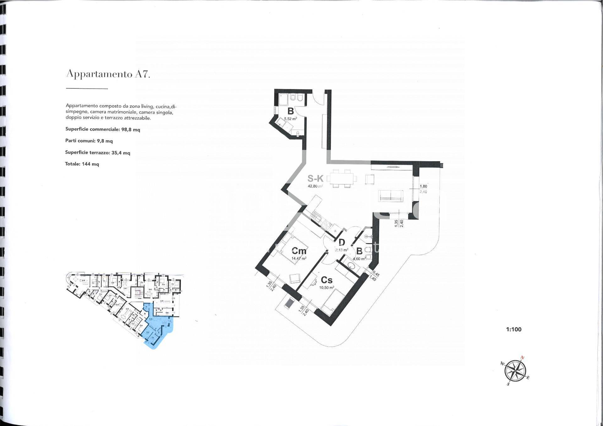 L'appartamento che vi proponiamo esposto totalmente a sud/est composto da entrata con bagno ospiti, zona living luminosa e spaziosa con due vetrate che conducono al terrazzo di metratura importante, cucina a vista, disimpegno, due camere, bagno notte.