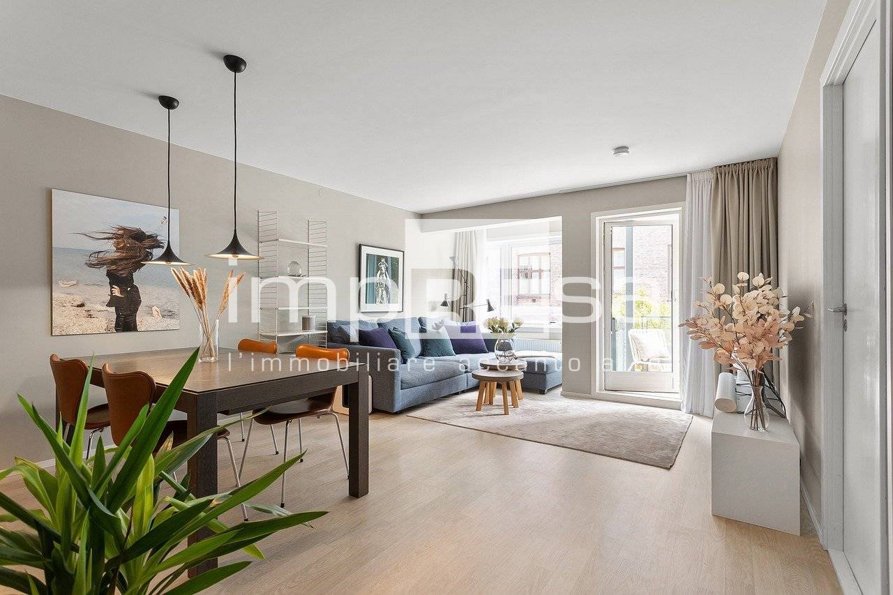 L'appartamento adatto a giovani coppie o single composto da zona living con grande vetrata su terrazzo abitabile e cucina a vista, disimpegno con angolo lavanderia, bagno completo finestrato, camera matrimoniale con bagno padronale.