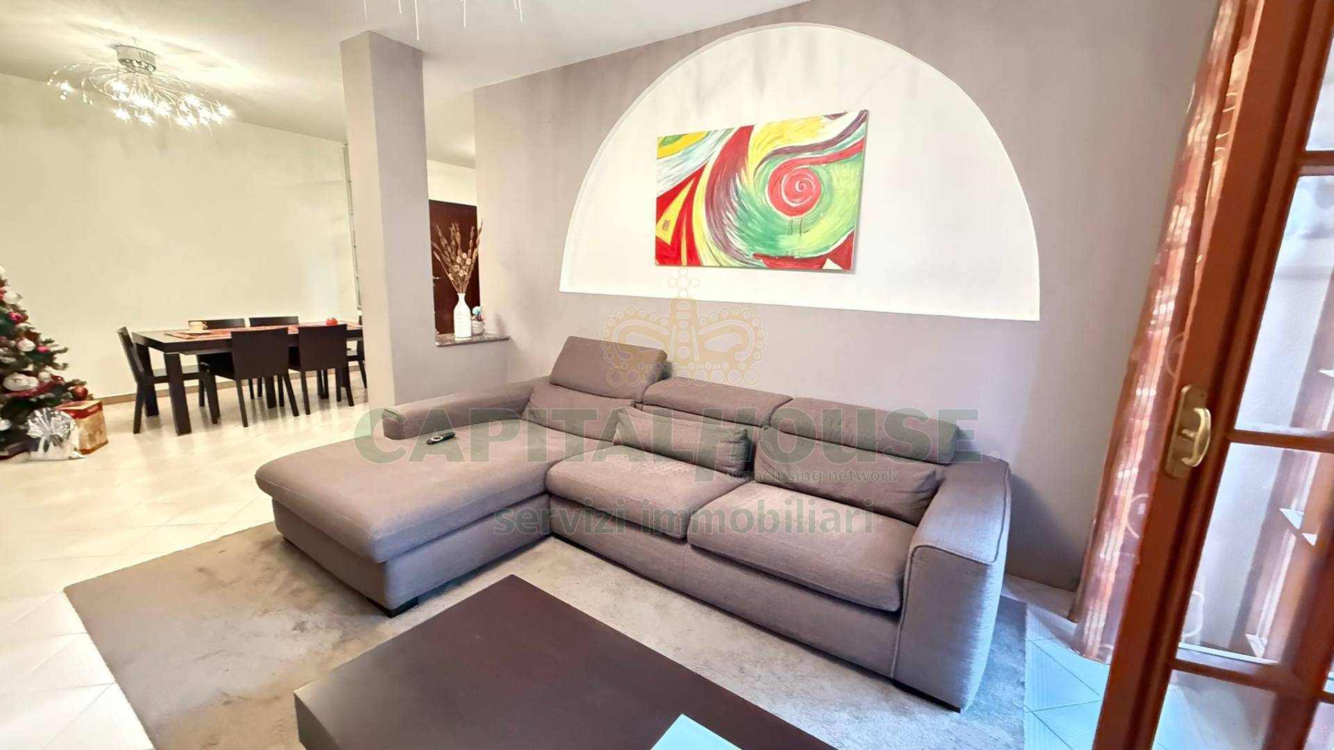 Lingresso apre su un salone ampio e luminoso, uno spazio che invita a vivere, arredare, accogliere.