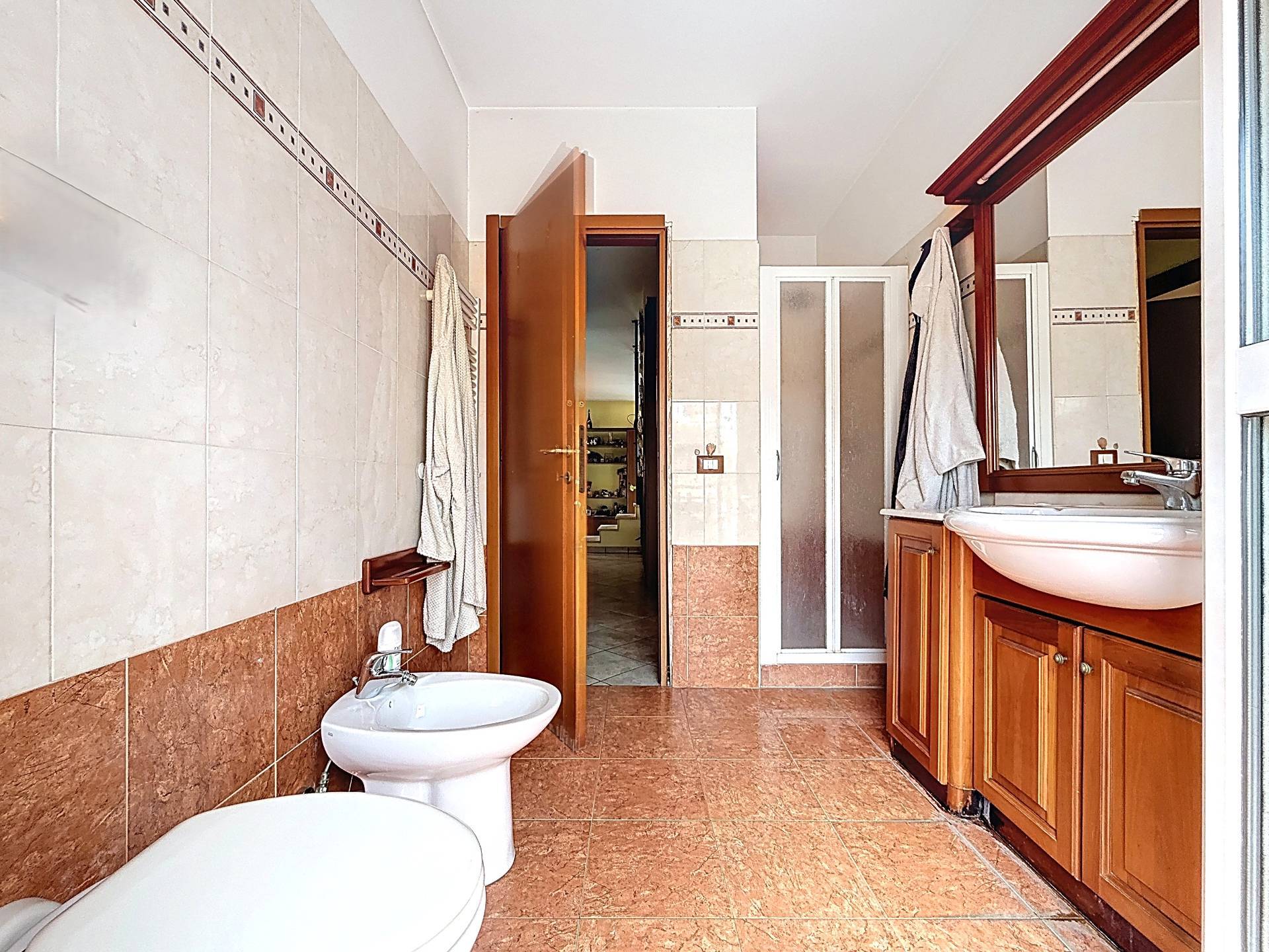 Una scala interna collega il piano principale al livello superiore, piano servizi, dove sono presenti una seconda camera matrimoniale con accesso a un balcone, una cameretta e un secondo bagno, anchesso dotato di finestra.