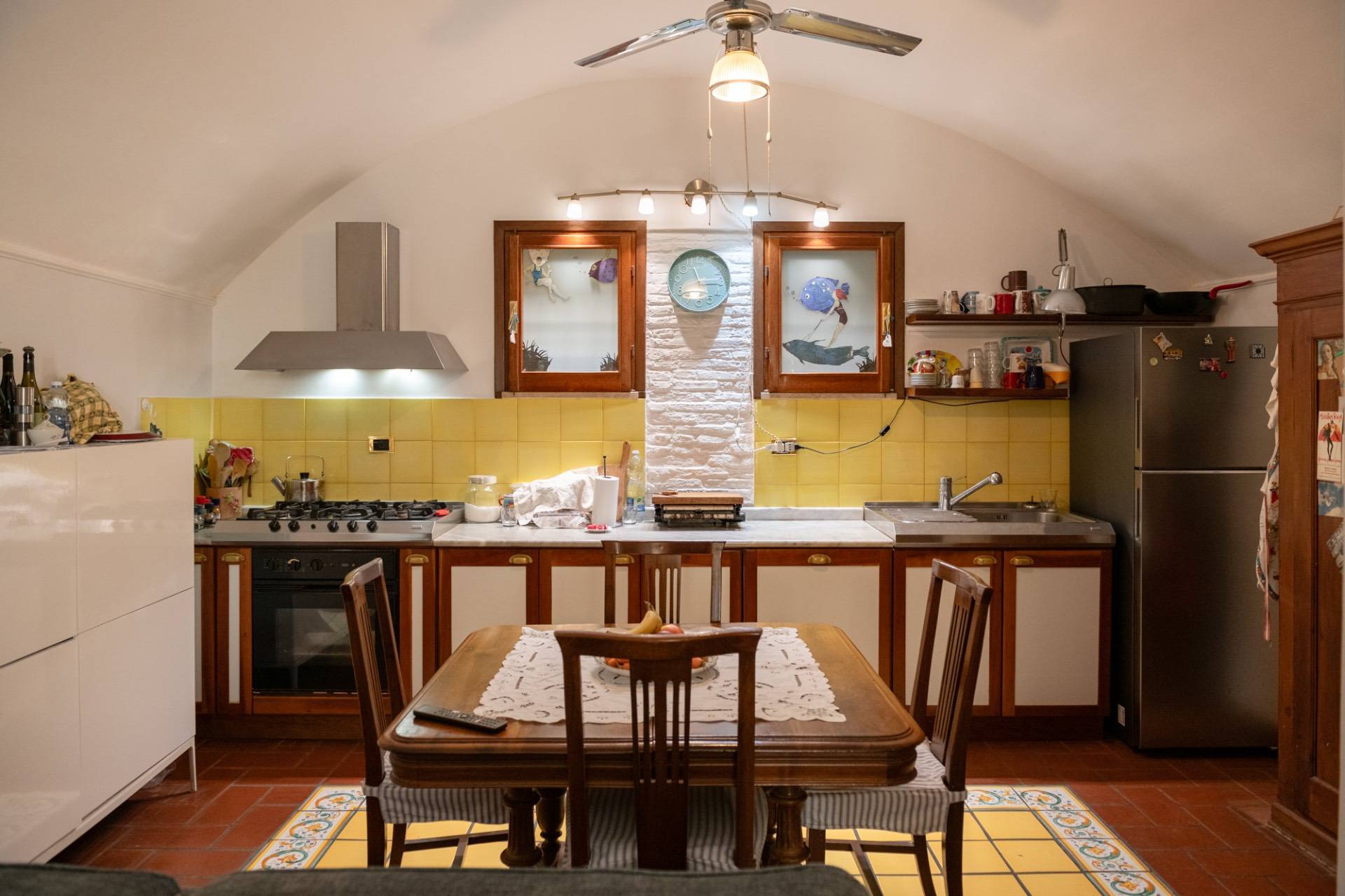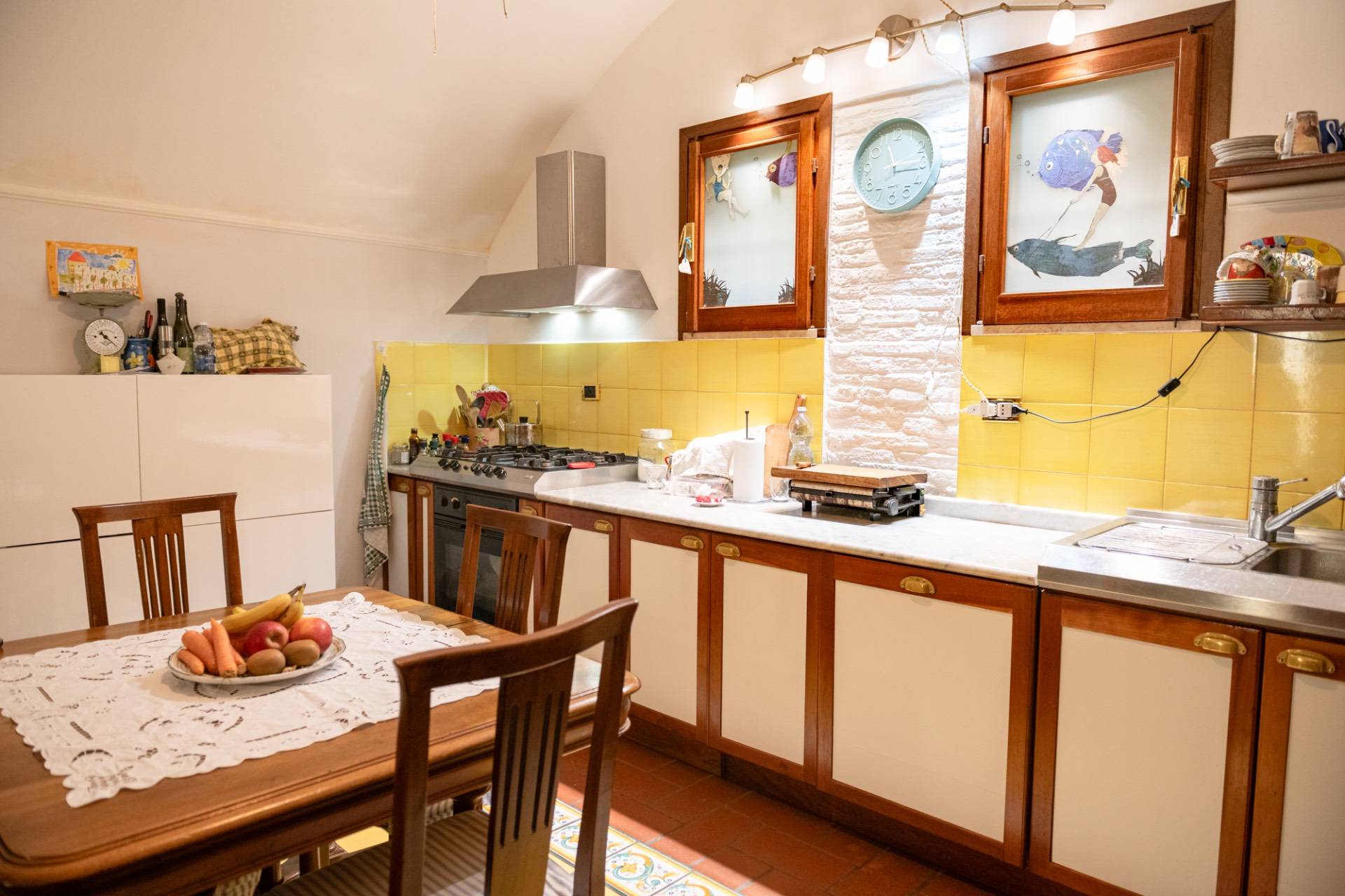 La casa, completamente ristrutturata, si presenta in condizioni eccellenti e conserva elementi architettonici di pregio, quali travi in legno a vista, pavimenti in parquet teak e porte in mogano.