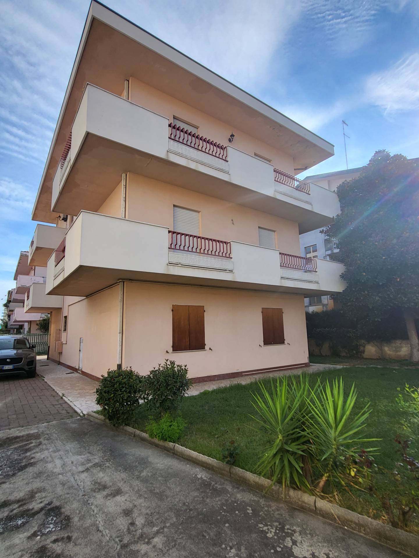 Vendesi a Montesilvano zona centrale vicina a tutti i principali servizi in piccola palazzina ben tenuta di sole tre unit appartamento da ristrutturare al secondo piano senza ascensore composto da soggiorno, cucina, camera, due camerette, due bagni, due balconi, due locali sottotetto, garage di mq 39, giardino privato di 200 mq circa ed area esterna per posti auto di 75 mq circa.