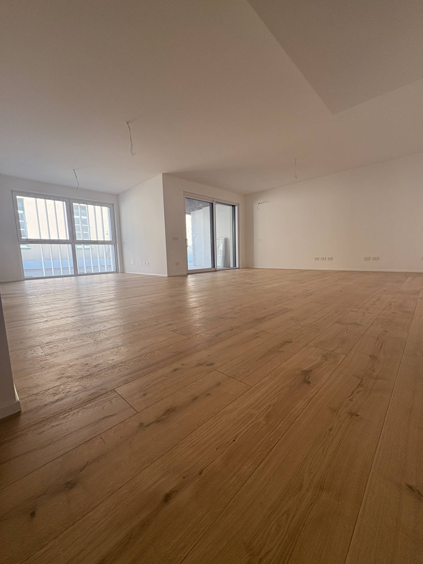 Proponiamo al primo piano ampio appartamento di 3 locali cos composto: salone doppio con cucina a vista e loggia vivibile, master room (camera con balcone, cabina armadi, e bagno), seconda camera e secondo bagno.