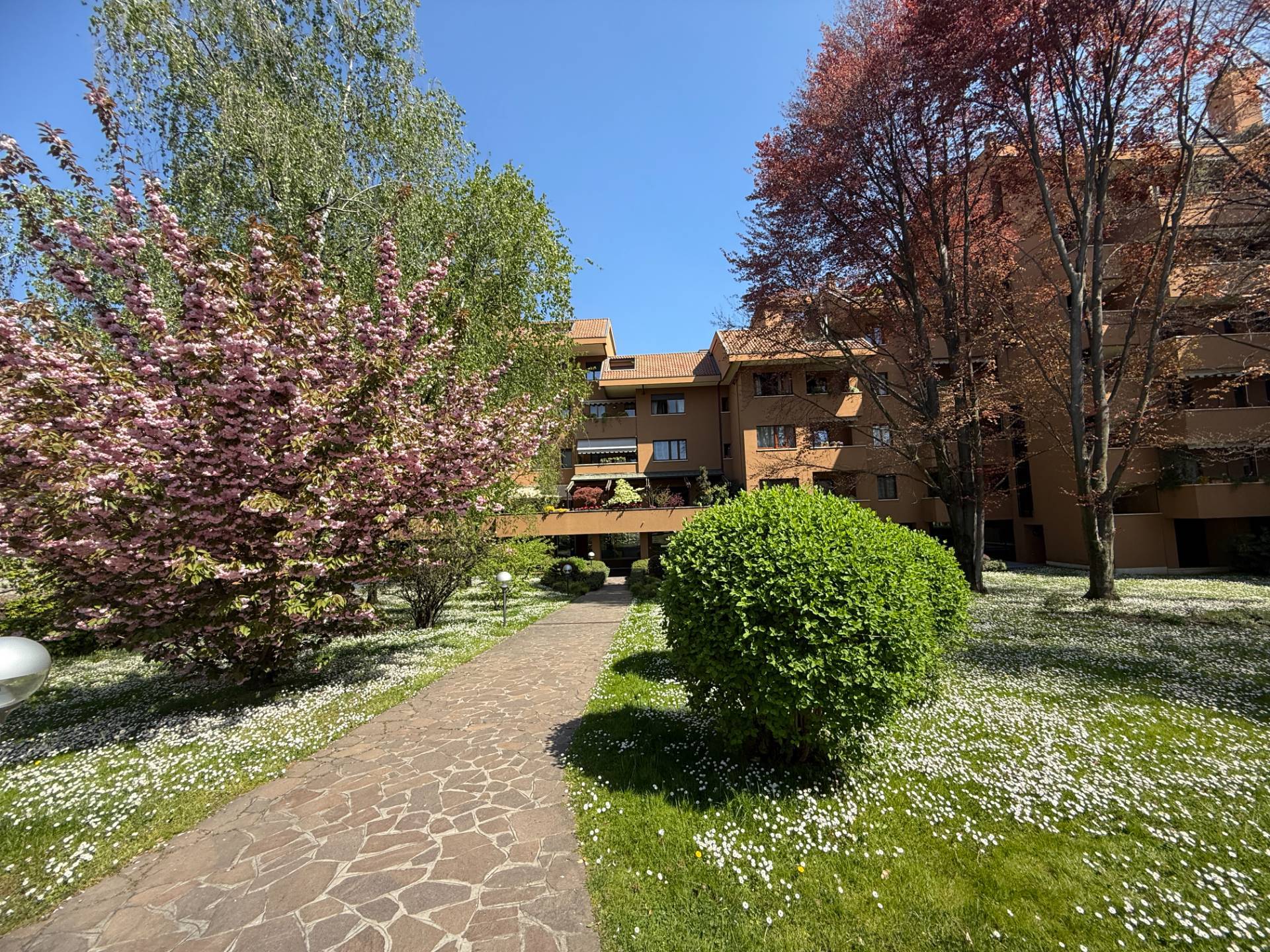 Al momento della vendita sar libero al rogito, permettendo cos all'acquirente di poter entrare subito in possesso della sua nuova casa. L'appartamento si estende su una superficie totale di 121 metri quadrati, immerso in un ampio parco condominiale con piscina coperta, campi da tennis e servizio portineria.