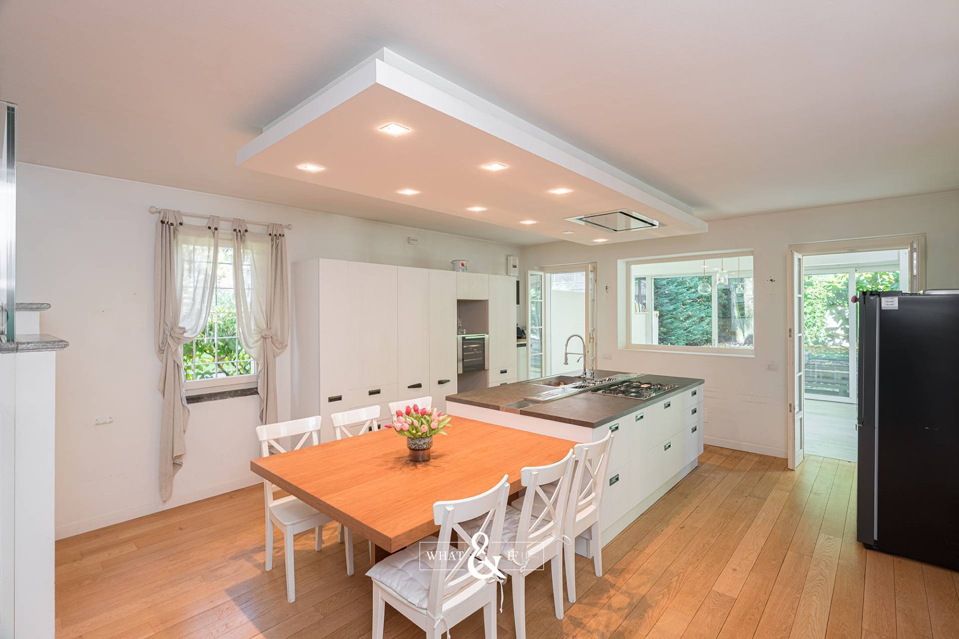 Due grandi portefinestre garantiscono una splendida luce sin dalle prime ore del mattino.