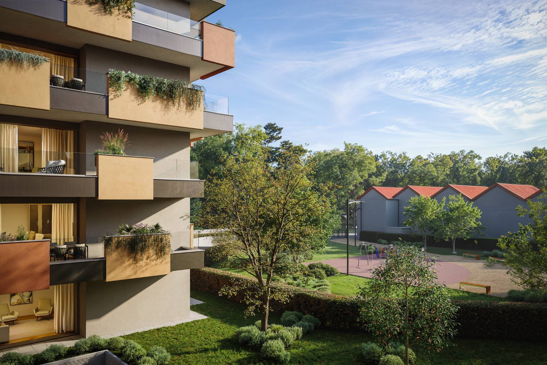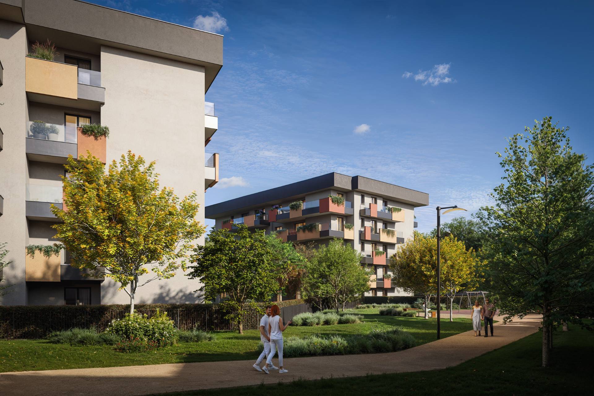 Il complesso di compone di due eleganti edifici di 5 piani fuori terra, studiati per ottimizzare la luce naturale e gli affacci sul parco circostante.