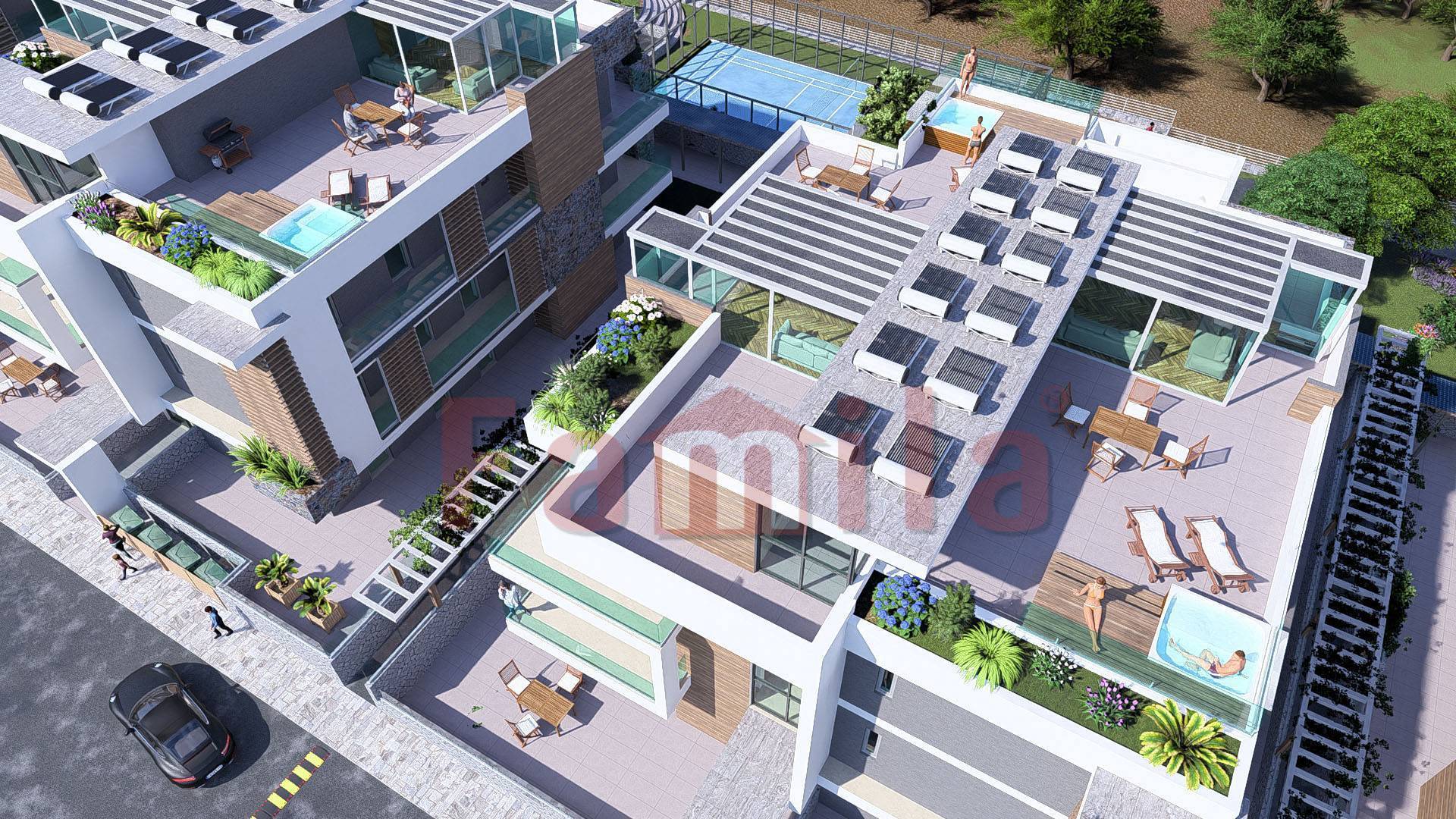 I quattro edifici del complesso, progettati con linee contemporanee e materiali davanguardia, creano un perfetto equilibrio tra spazi interni ed esterni.