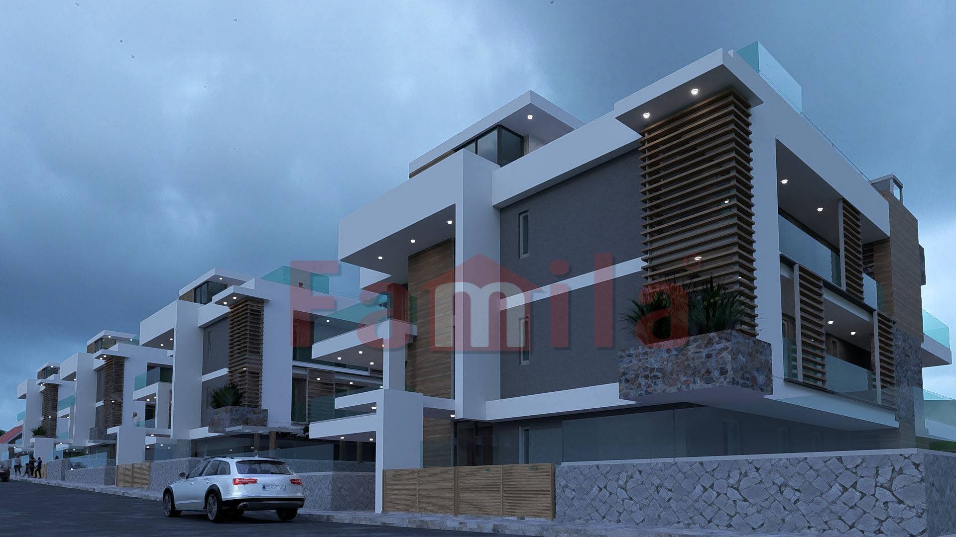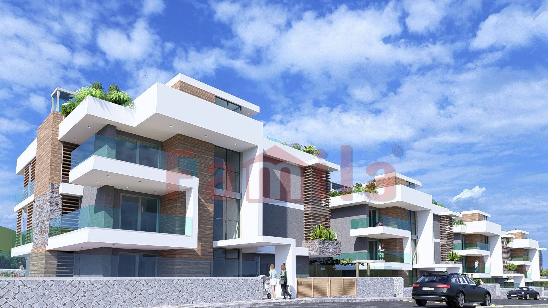 I quattro edifici del complesso, progettati con linee contemporanee e materiali d'avanguardia, creano un perfetto equilibrio tra spazi interni ed esterni.