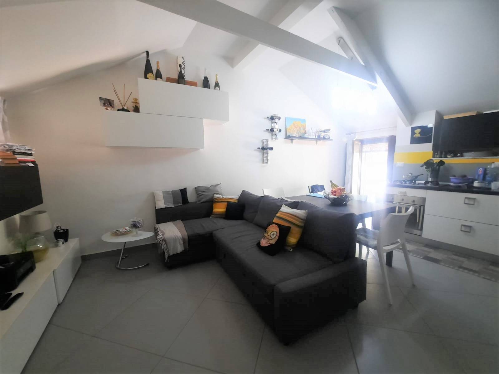 Internamente suddivisa: tramite una scalinata interna accediamo nel disimpegno che conduce a tutte le camere; sulla destra troviamo la camera da letto, disposta di balcone alla romana, proseguendo vi una cameretta, il bagno e un accogliente salone con angolo cottura che affaccia sullampio balcone di circa 10/15mq. Limmobile gode di doppia esposizione e dispone di riscaldamento autonomo e impianto di condizionamento.