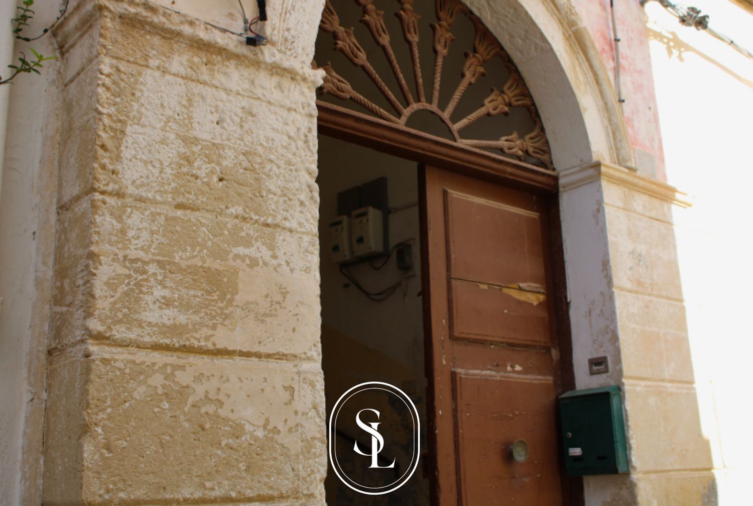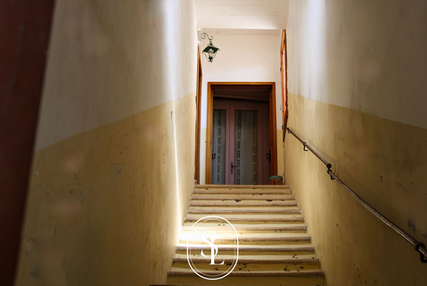 La maestosit della dimora si rivela fin dall'ingresso, attraverso un elegante portone in legno che conduce a una scala in pietra originale, ornata dallo stemma di famiglia.