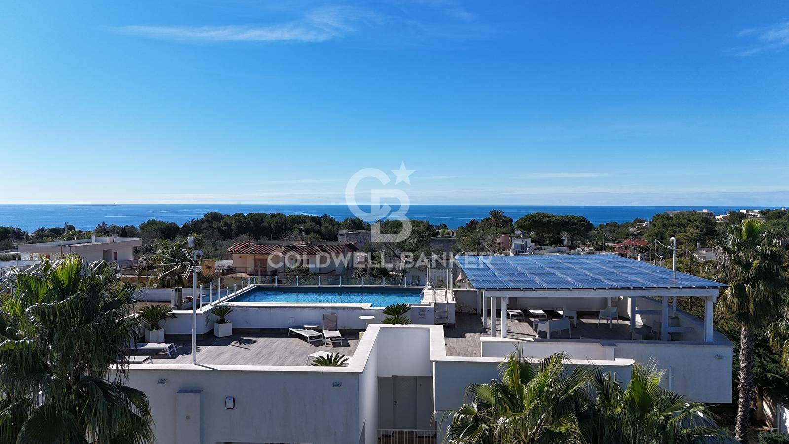 Il complesso, progettato per offrire benessere e comfort di livello superiore, ospita una splendida piscina vista mare situata sul terrazzo, impreziosita da un solarium panoramico e da una raffinata area relax coperta dallimpianto fotovoltaico.