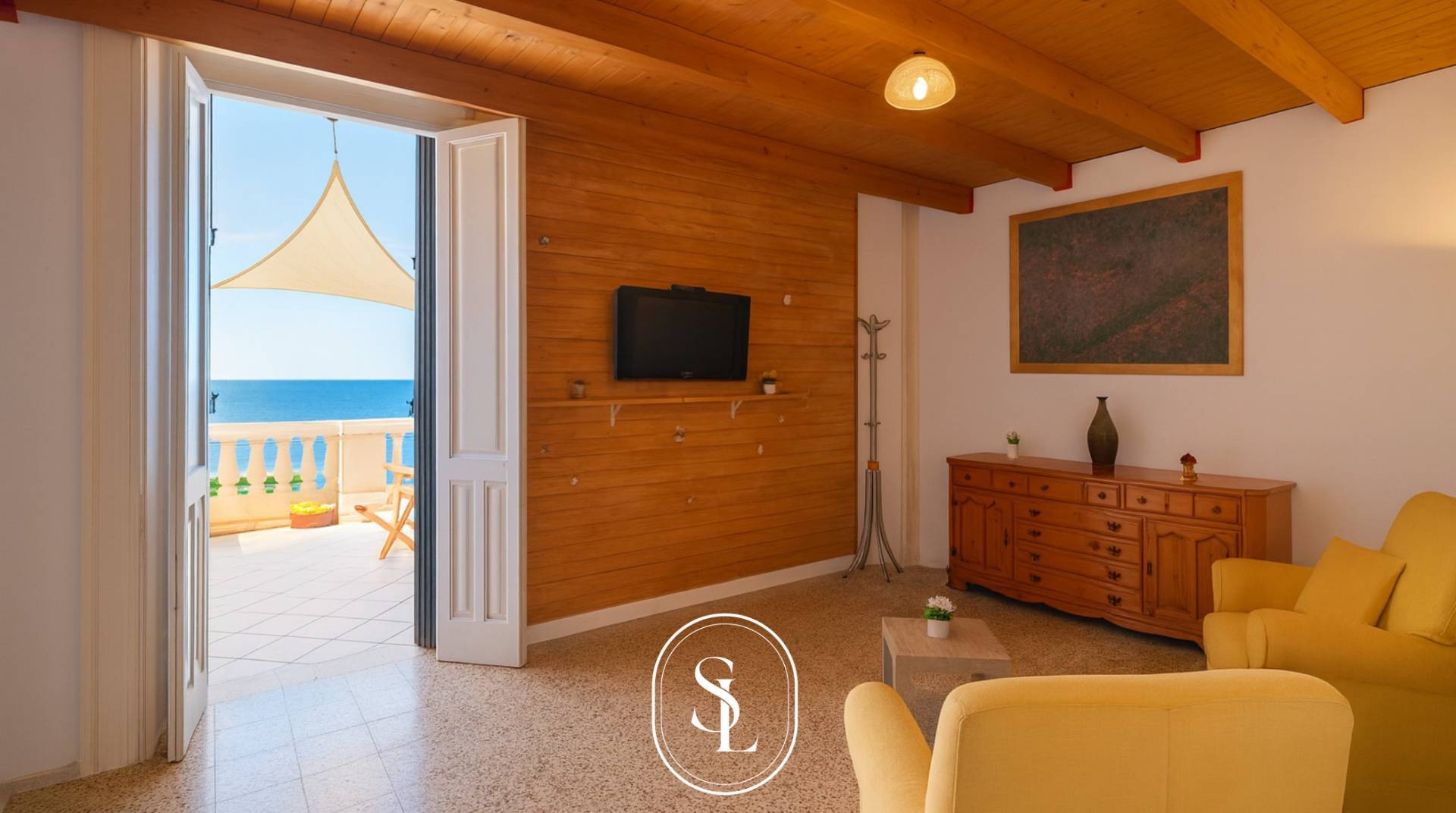 Dal soggiorno, il balcone regala il vero momento di meraviglia: un affaccio privilegiato che d la sensazione di poter sfiorare il mare con un gesto, una prospettiva rara, riservata a poche dimore deccellenza.