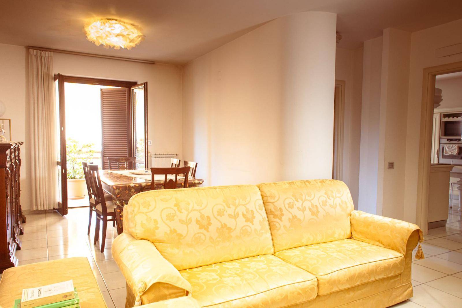 - Zona Giorno: accoglienza, convivialit, relax Lingresso si apre su un luminoso salone doppio, ampio e arioso, impreziosito da grandi superfici vetrate che affacciano direttamente sul terrazzo privato, perfetto per ospitare cene allaperto o semplicemente godersi momenti di relax.