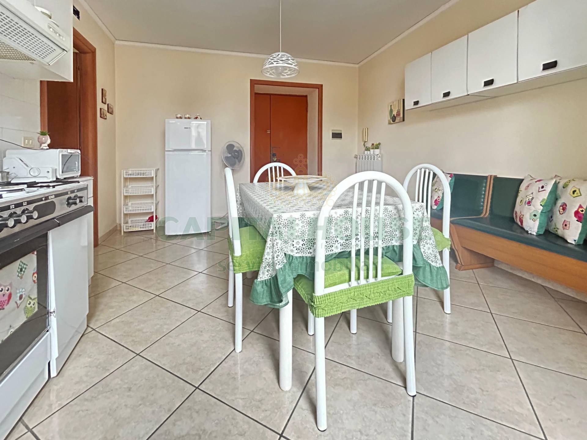 Ad accoglierci c la zona giorno con cucina abitabile, ampio soggiorno e bagno.