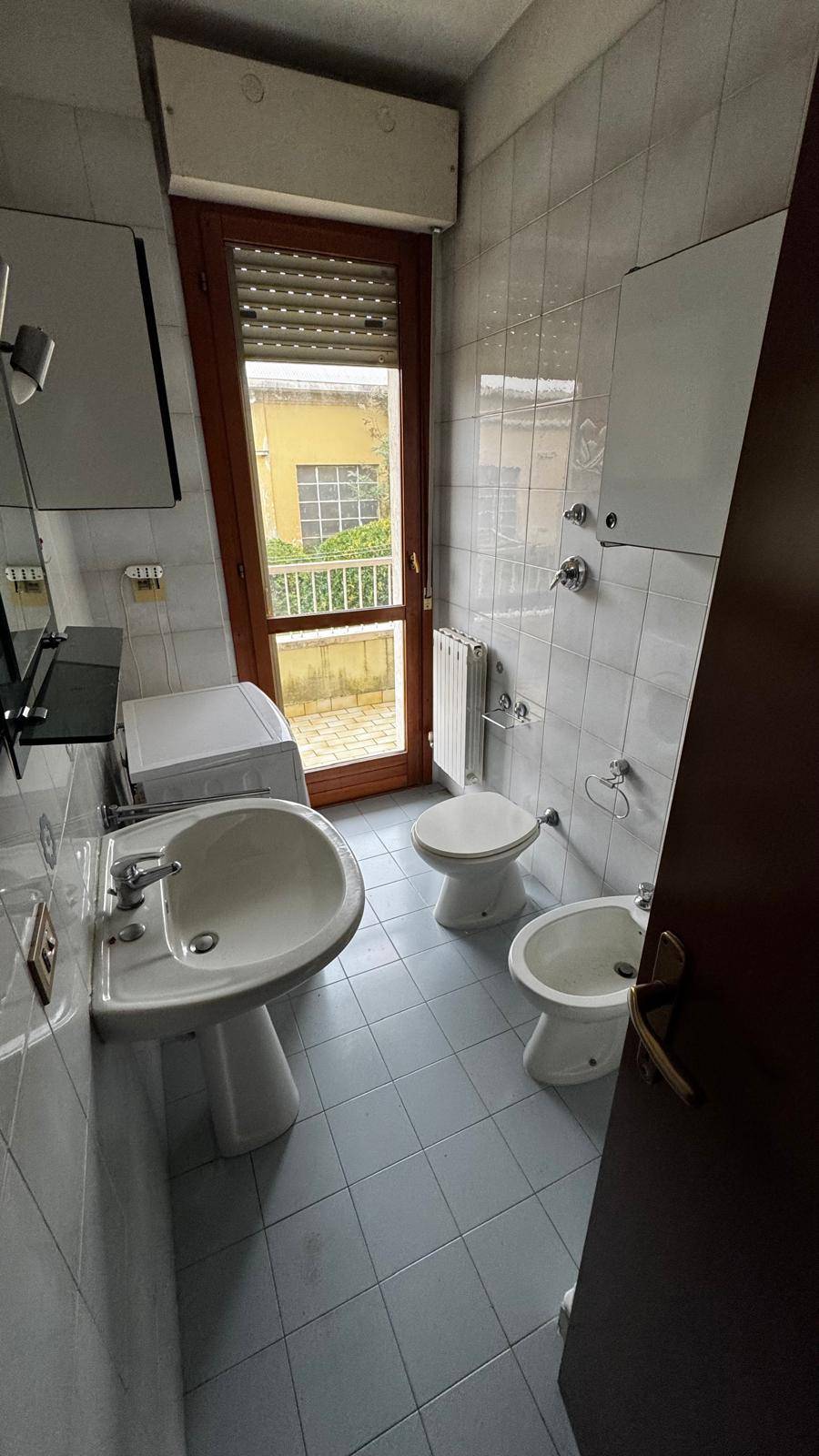L'appartamento, al primo piano con ascensore composto da: ingresso su disimpegno, sala con cucina e balcone verandato, camera matrimoniale e bagno con balcone.