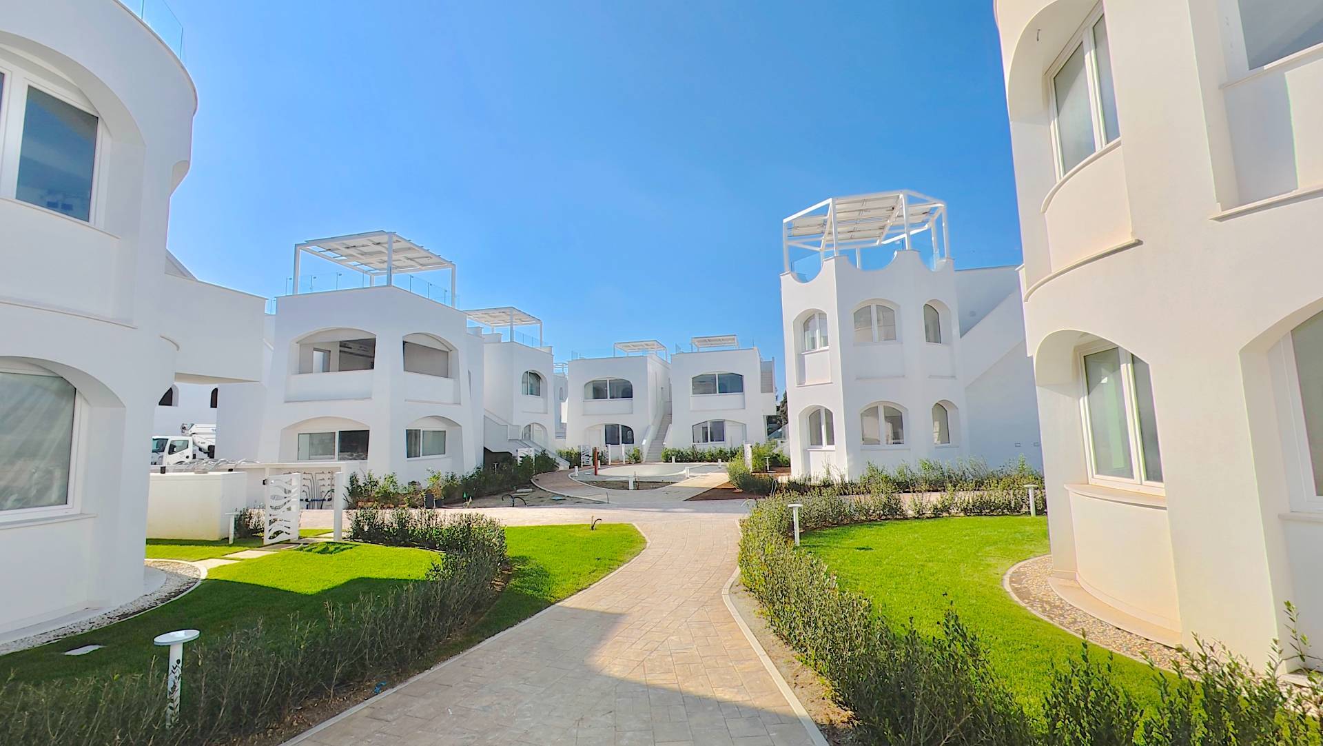 L'appartamento inoltre fornito una meravigliosa terrazza privata al piano superiore delle dimensioni di 78 mq circa, con vista del mare, allestita con cucina all'aperto e gazebo ombreggiante.