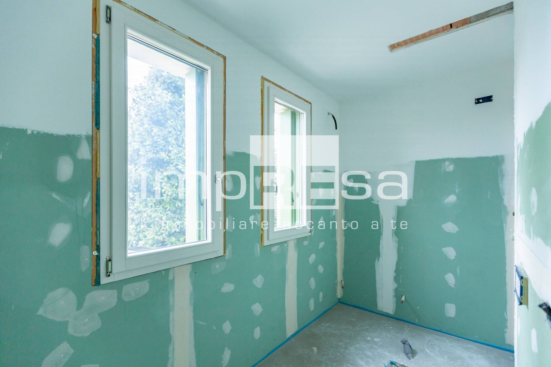 Il primo piano composto da un salotto da dove si accede ad un comodo terrazzo, da una cucina separata collegata anch'essa da terrazzo ed un bagno con doccia di circa 6 mq. Al secondo piano l'appartamento dotato di una camera matrimoniale di circa 18 mq ed una camera singola di circa 10 mq, corridoio ed un bagno di circa 7 mq. L'appartamento dotato di: portoncino blindato, videocitofono, impianto elettrico finito, predisposizione allarme, impianto di riscaldamento a pavimento, predisposizione bagni, infissi nuovi in alluminio esterno/legno interno, caldaia di ultima generazione . Le spese condominiali non essendoci l'obbligo di amministratore, si limitano alle sole spese di giardinaggio del giardino condominiale.