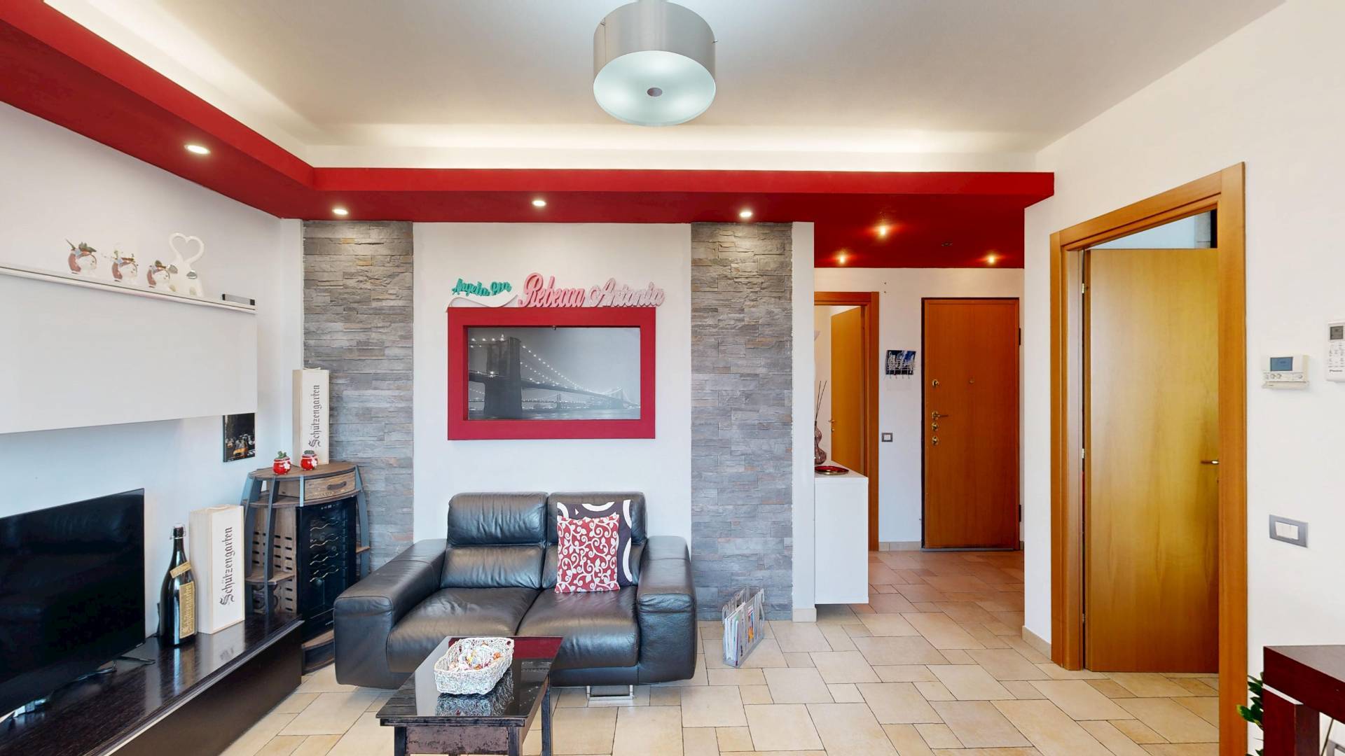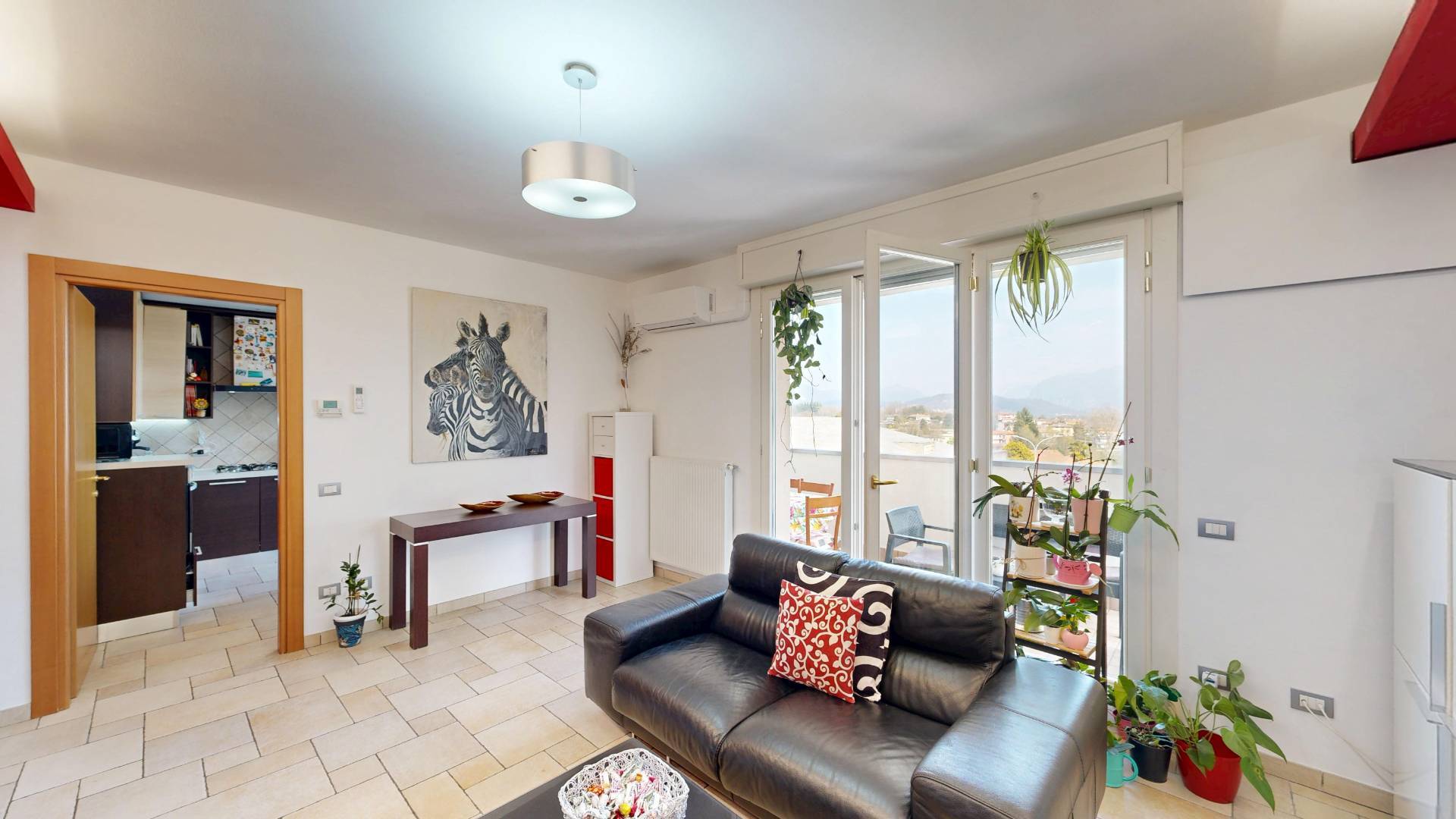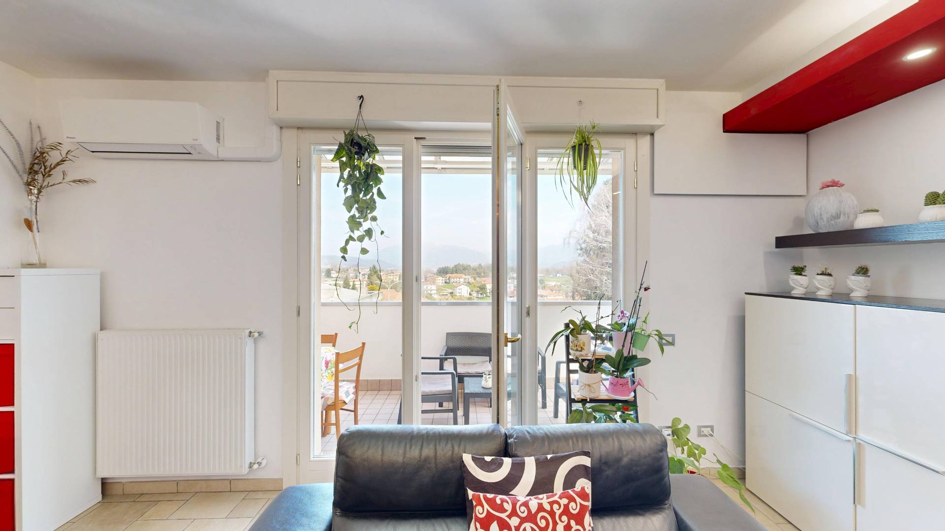 Lappartamento accoglie con un soggiorno spazioso e luminoso, collegato a un grande balcone vivibile, ideale per momenti di relax o convivialit.