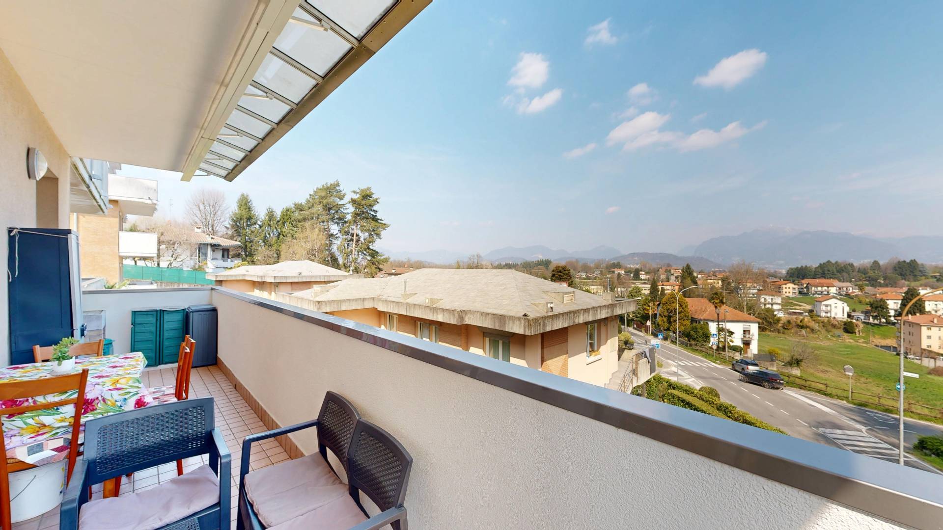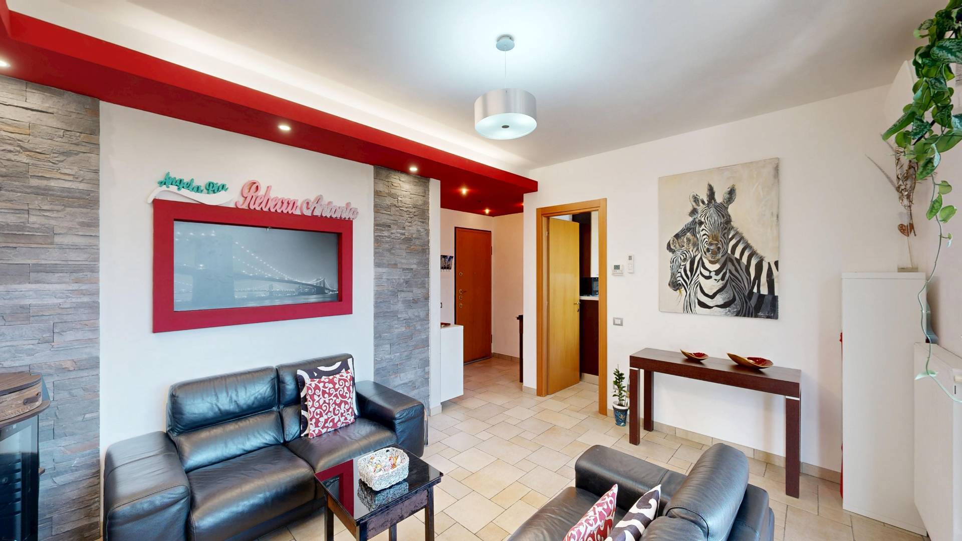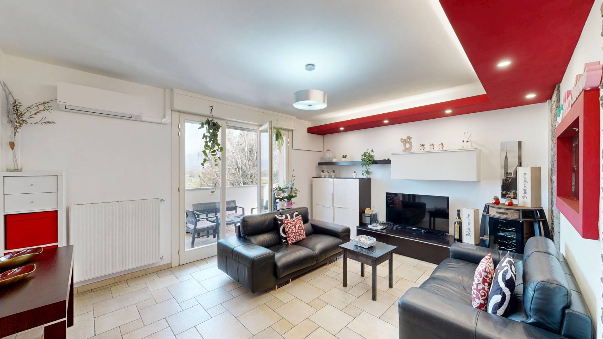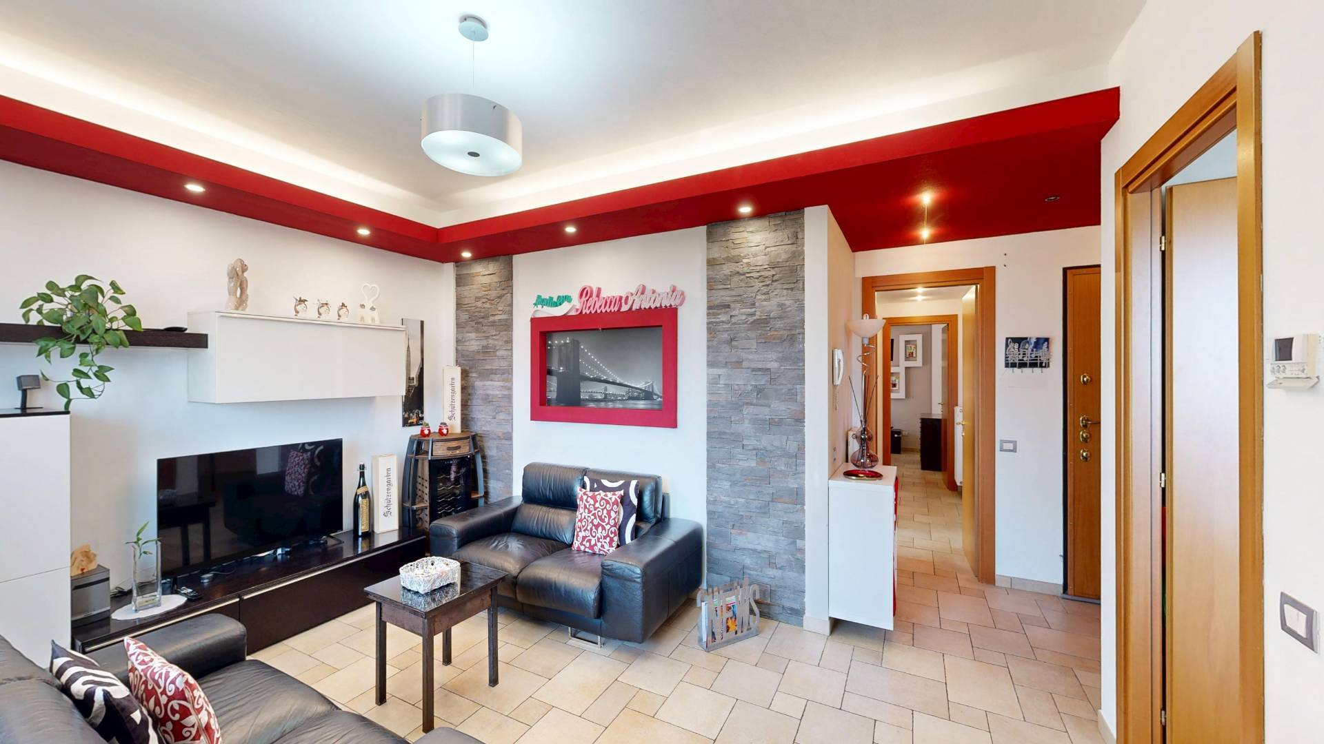 Lappartamento accoglie con un soggiorno spazioso e luminoso, collegato a un grande balcone vivibile, ideale per momenti di relax o convivialit.