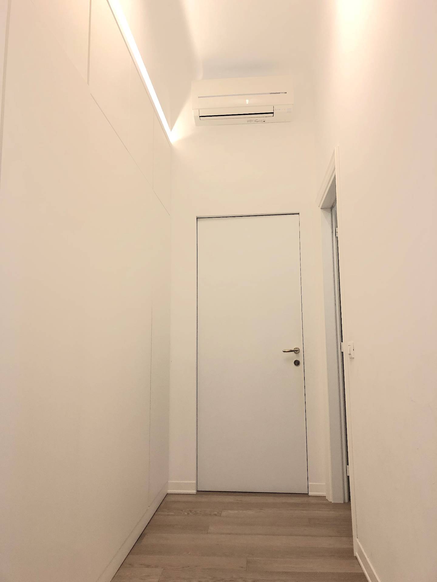 La terza camera facilmente ripristinabile, al momento stata accorpata alla zona living, l'appartamento climatizzato con doppia esposizione e un balcone L'appartamento stato completamente e finemente ristrutturato nel 2017 con attenzione ai dettaglli e alle finiture salvaguardando le altezze orginali dei locali h 3.30 e alcuni stilemi tipici dell'epoca di costruzione.
