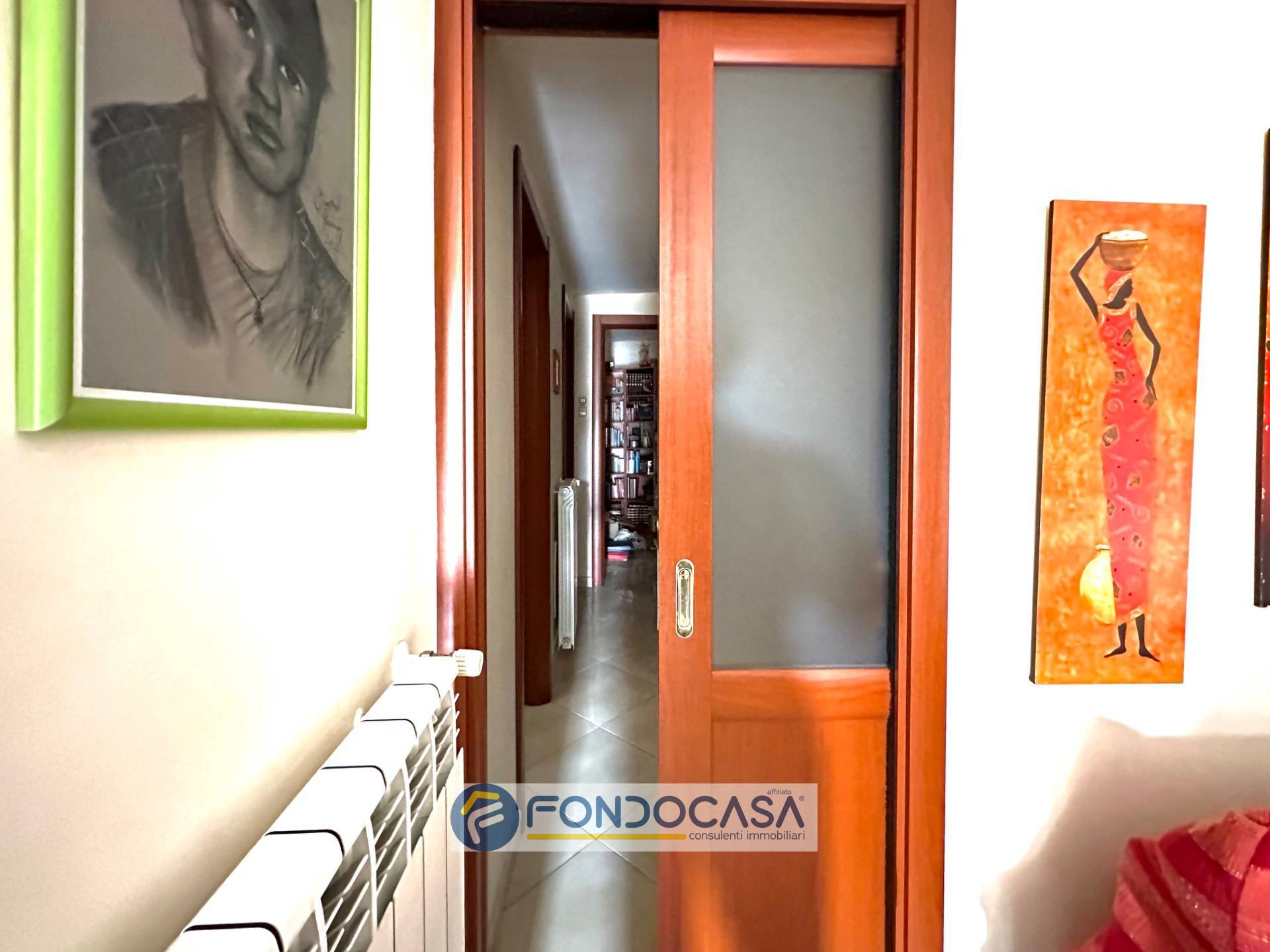 Lingresso si apre su un ampio e luminoso salone, collegato alla cucina ma al contempo separabile grazie a raffinate porte scorrevoli, ideali per coniugare convivialit e privacy.