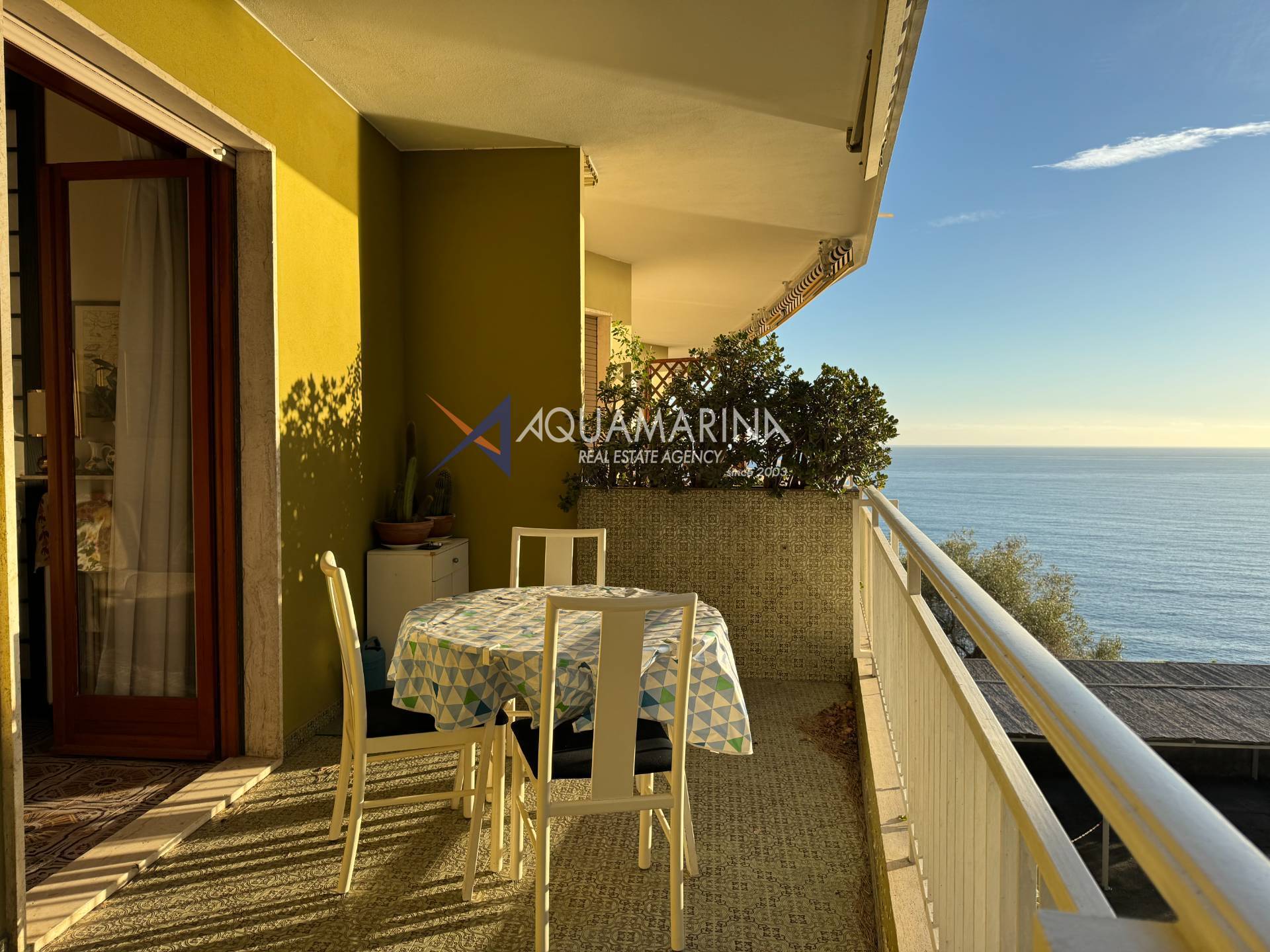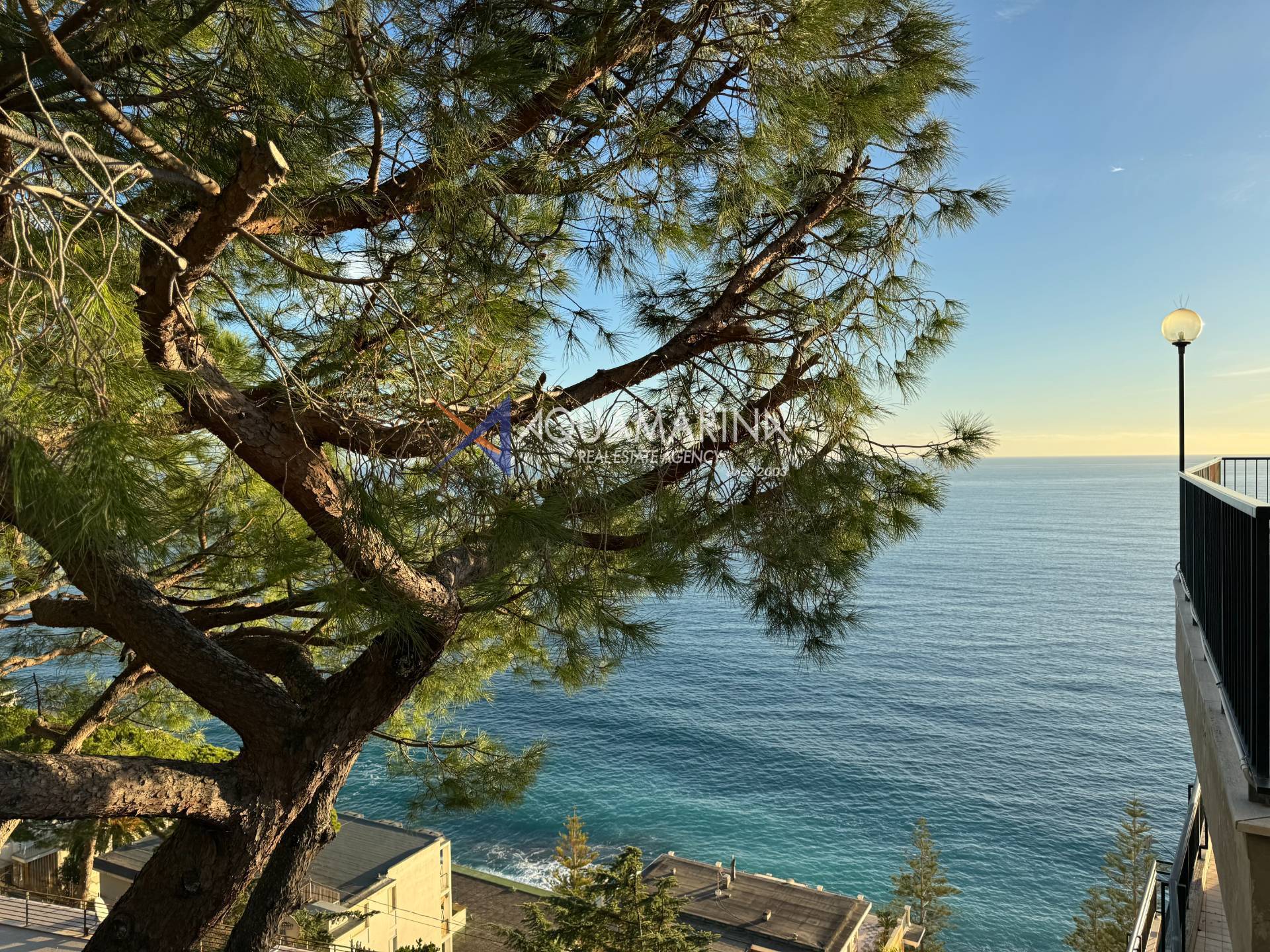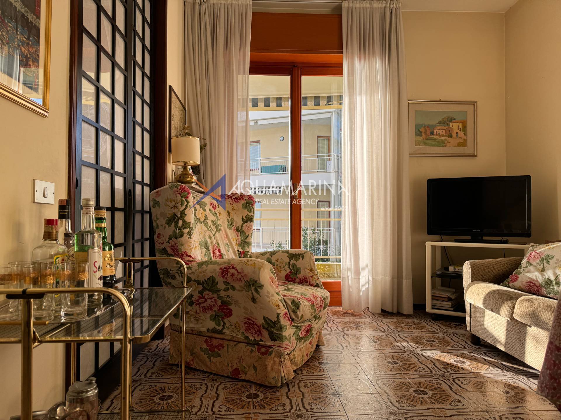 Ospedaletti, a 500 mt dalle spiagge, proponiamo in vendita grazioso appartamento vista mare di 63mq circa, composto da: ingresso, soggiorno con accesso alla terrazza vista mare, cucinino, camera matrimoniale anch'essa con accesso alla terrazza, bagno finestrato, balcone verandato per uso lavanderia e posto auto privato al coperto.