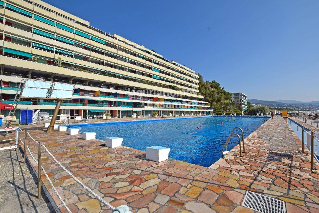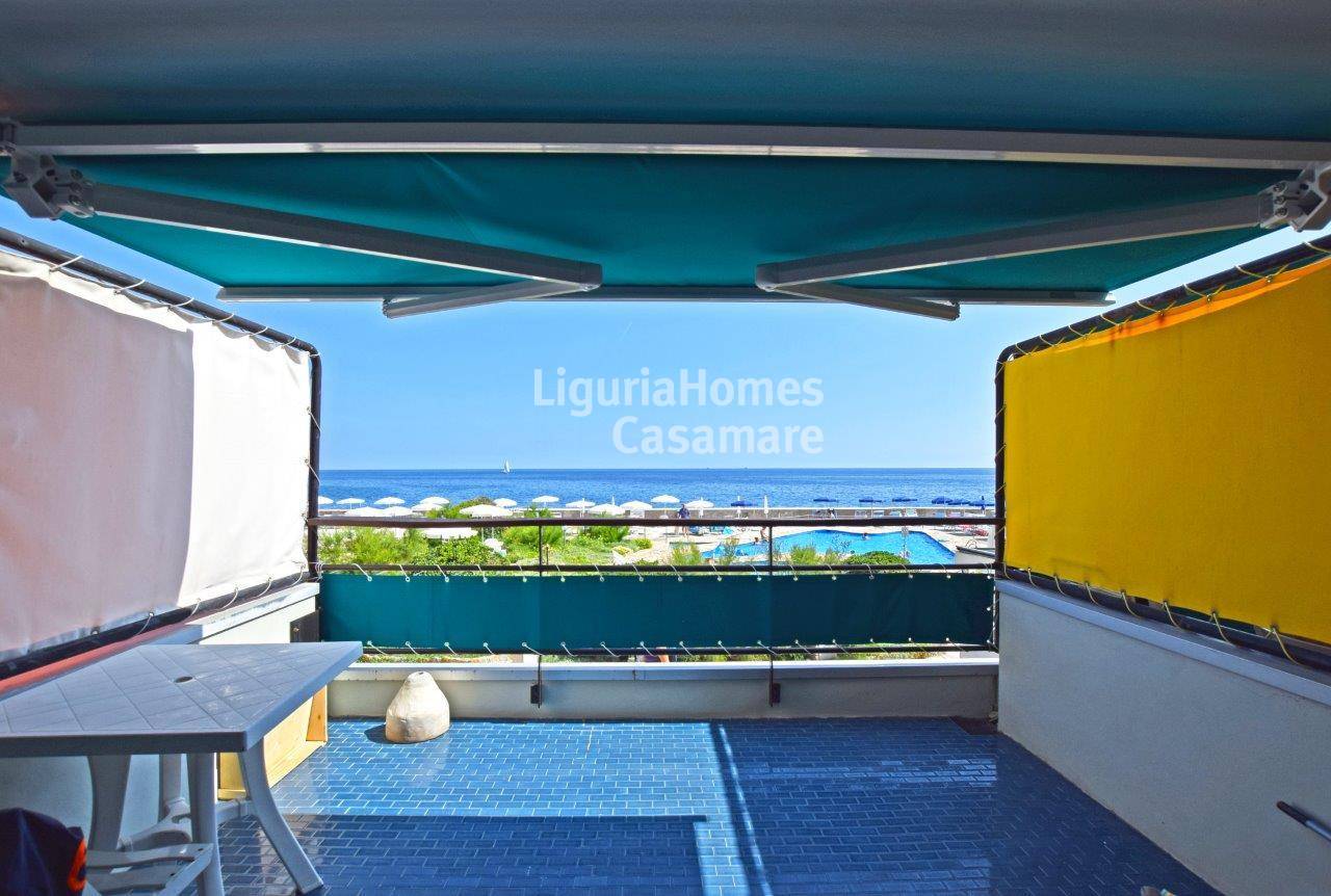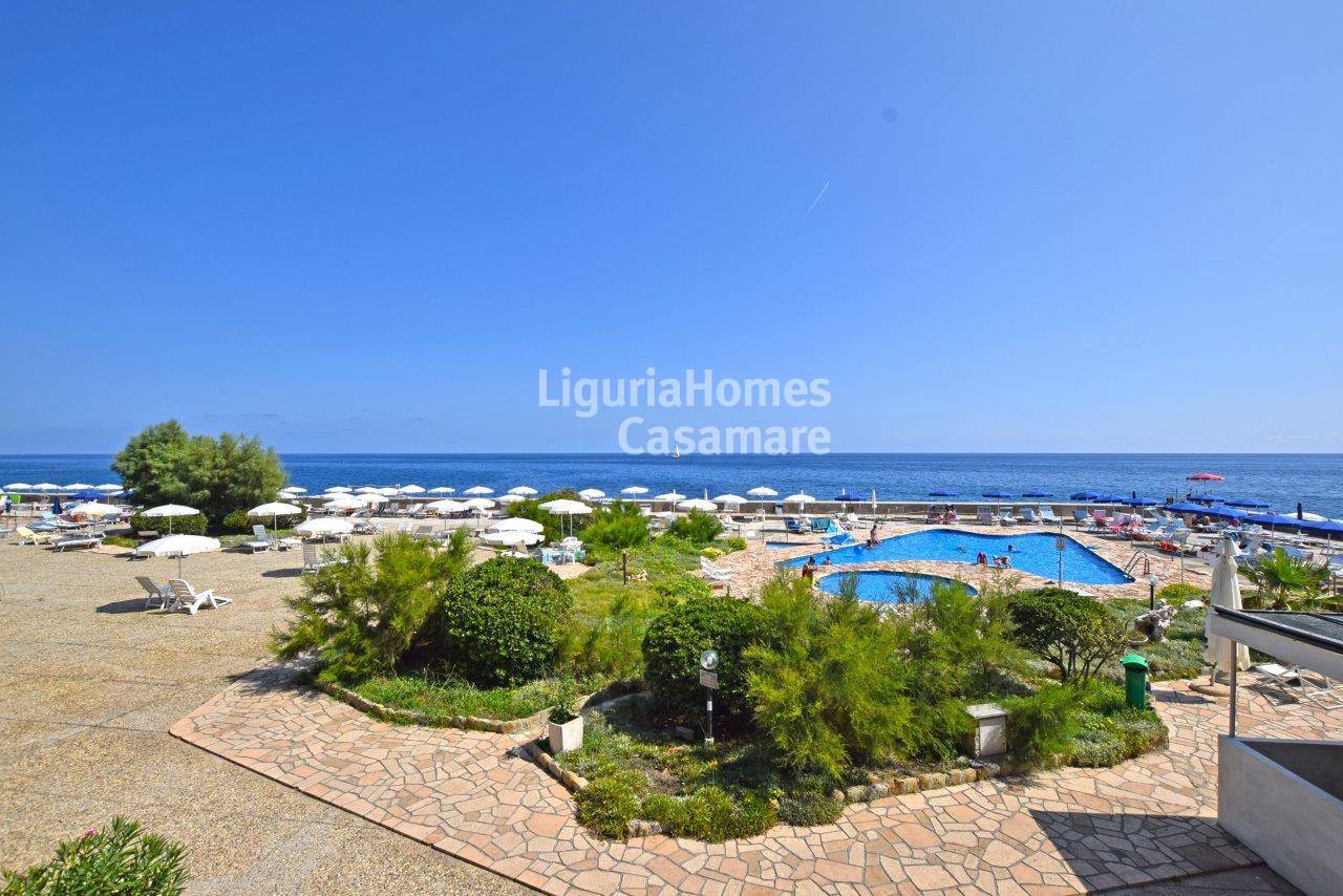 In un prestigioso complesso residenziale con doppia piscina e spiaggia privata, direttamente affacciato sul mare ad Ospedaletti, in vendita un meraviglioso appartamento con vista panoramica mozzafiato.