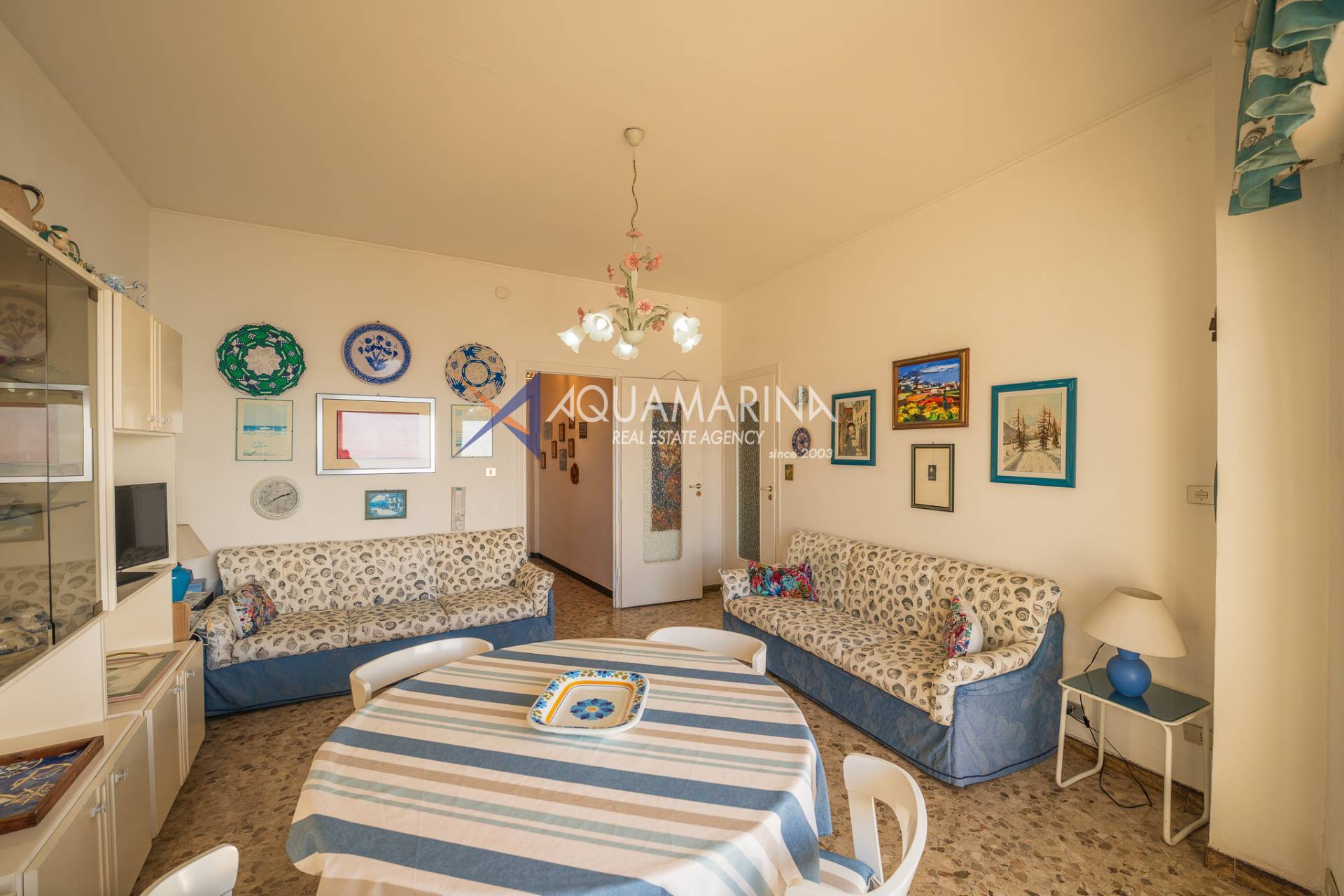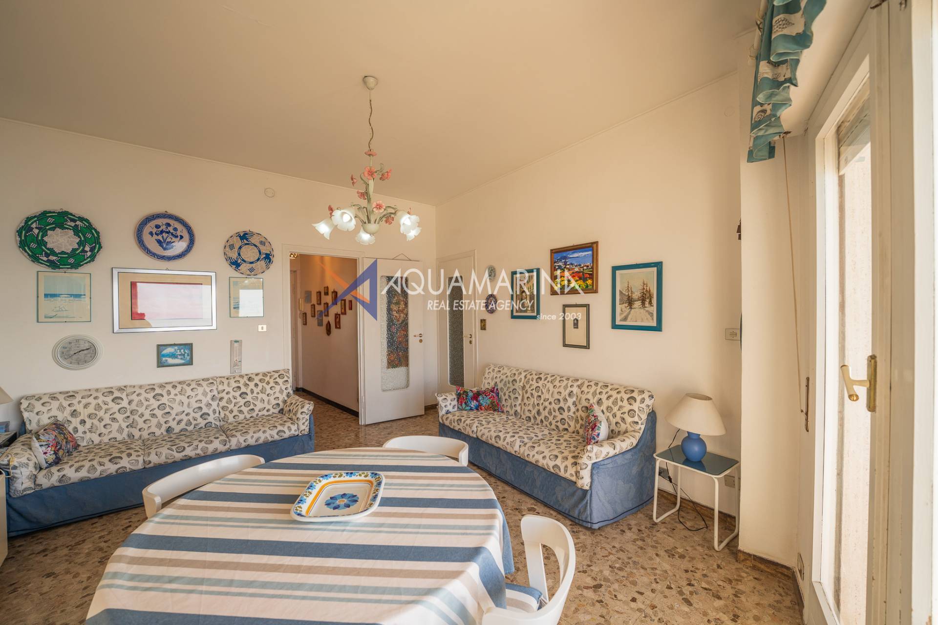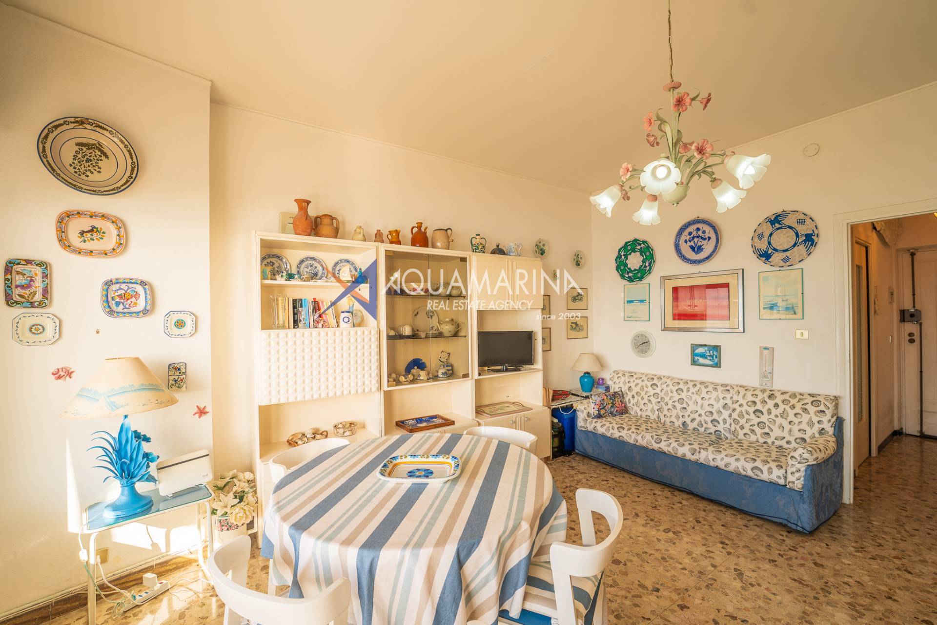 composto da ingresso, cucina semi-abitabile, ampio soggiorno molto luminoso con accesso diretto alla spettacolare terrazza fronte mare, grande bagno finestrato e due camere da letto.