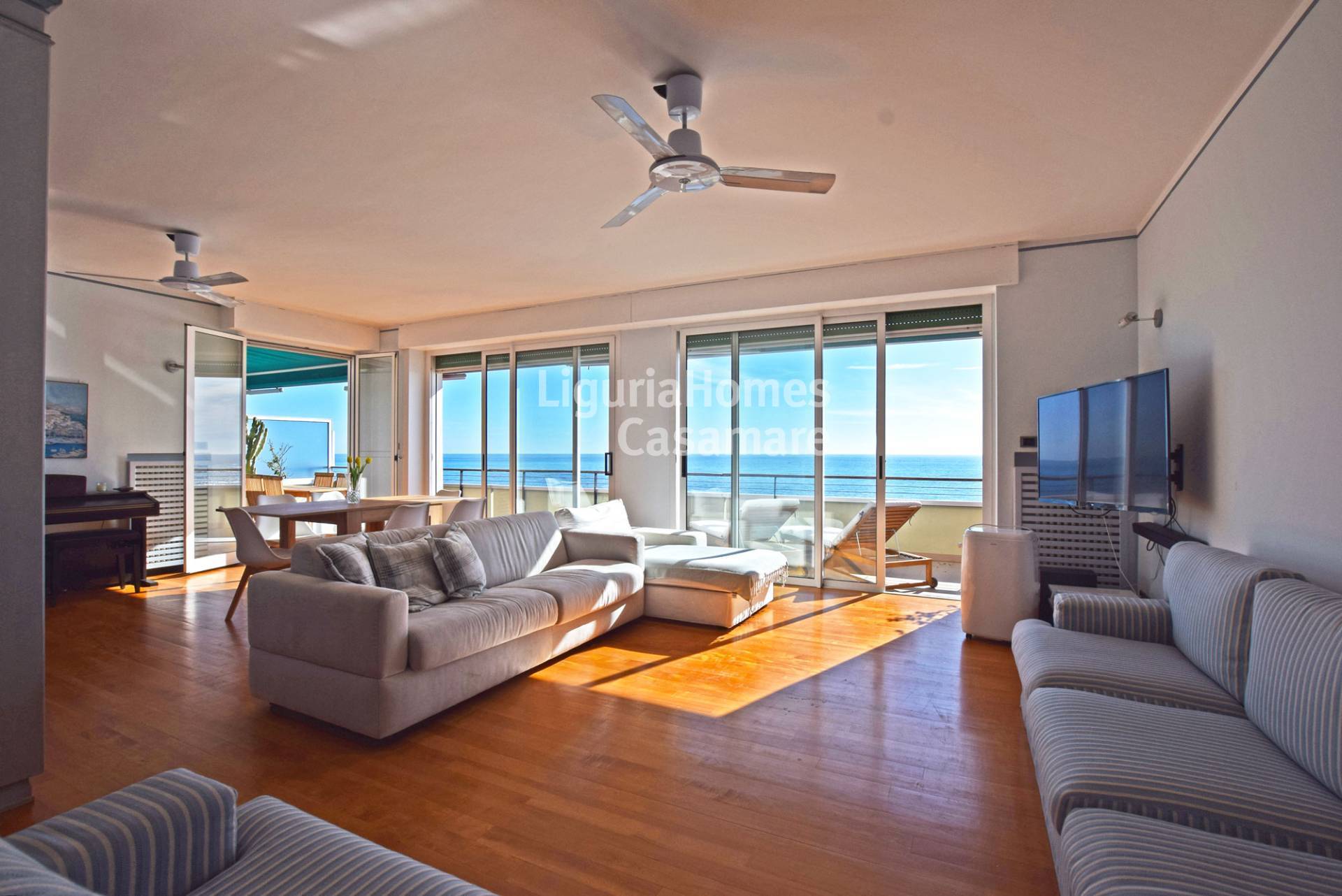 Lingresso conduce alla grande zona giorno, suddivisa in area living con zona TV e zona pranzo, entrambe affacciate sulla splendida terrazza panoramica fronte mare, ampia e vivibile, ideale per pranzi allaperto e momenti di relax con vista impareggiabile.
