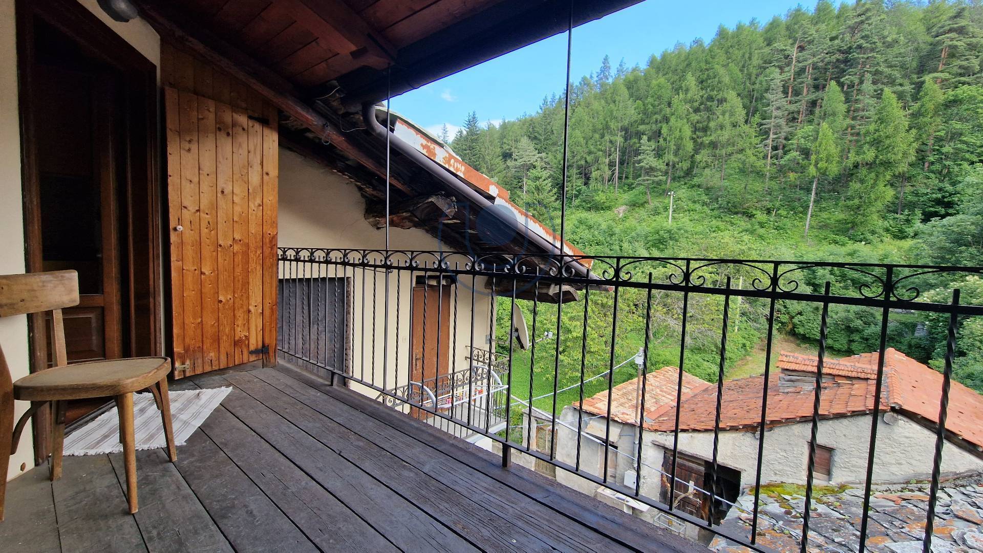 Vetrate panoramiche: Le grandi vetrate offrono una splendida vista e si aprono su un bellissimo balcone in legno, ideale per godersi momenti all'aria aperta.