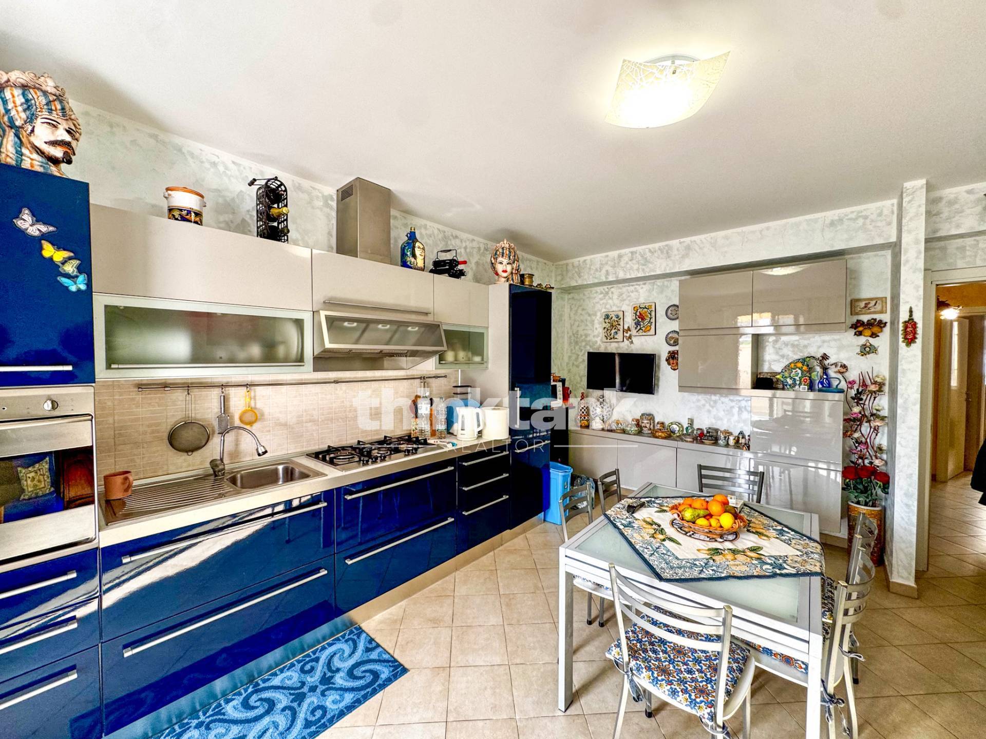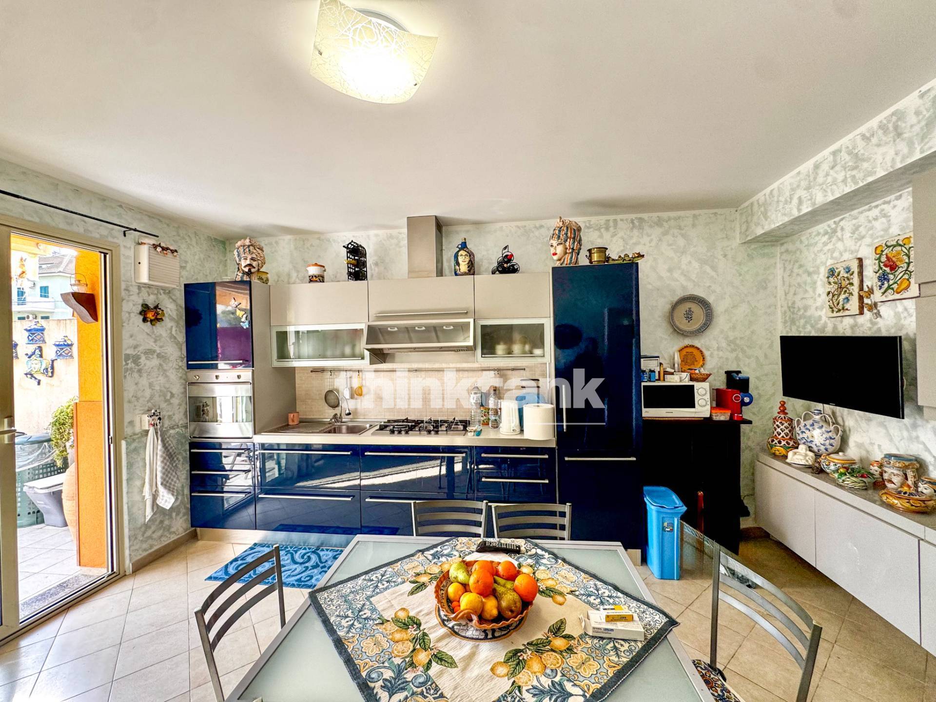 Dalla veranda si entra nella zona giorno, composta da una cucina-soggiorno ampia e luminosa, progettata per offrire un ambiente conviviale e accogliente.