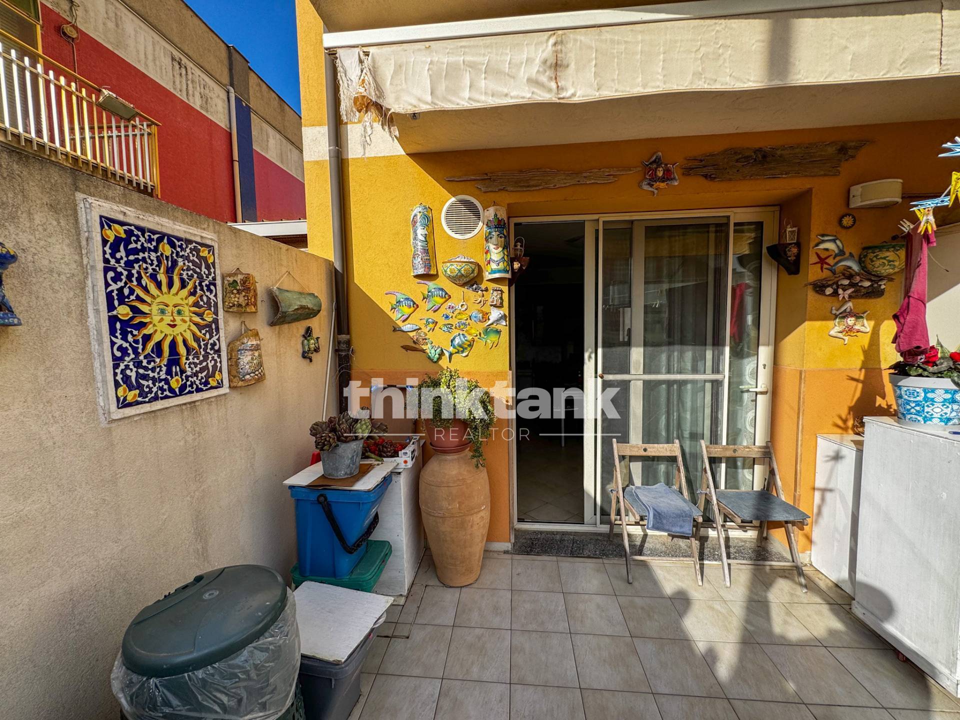 Veranda privata e zona giorno luminosa Laccesso principale indipendente introduce direttamente nella veranda privata, uno spazio esterno ideale per momenti di relax, pranzi allaperto o semplicemente per godere del clima mite della Sicilia.