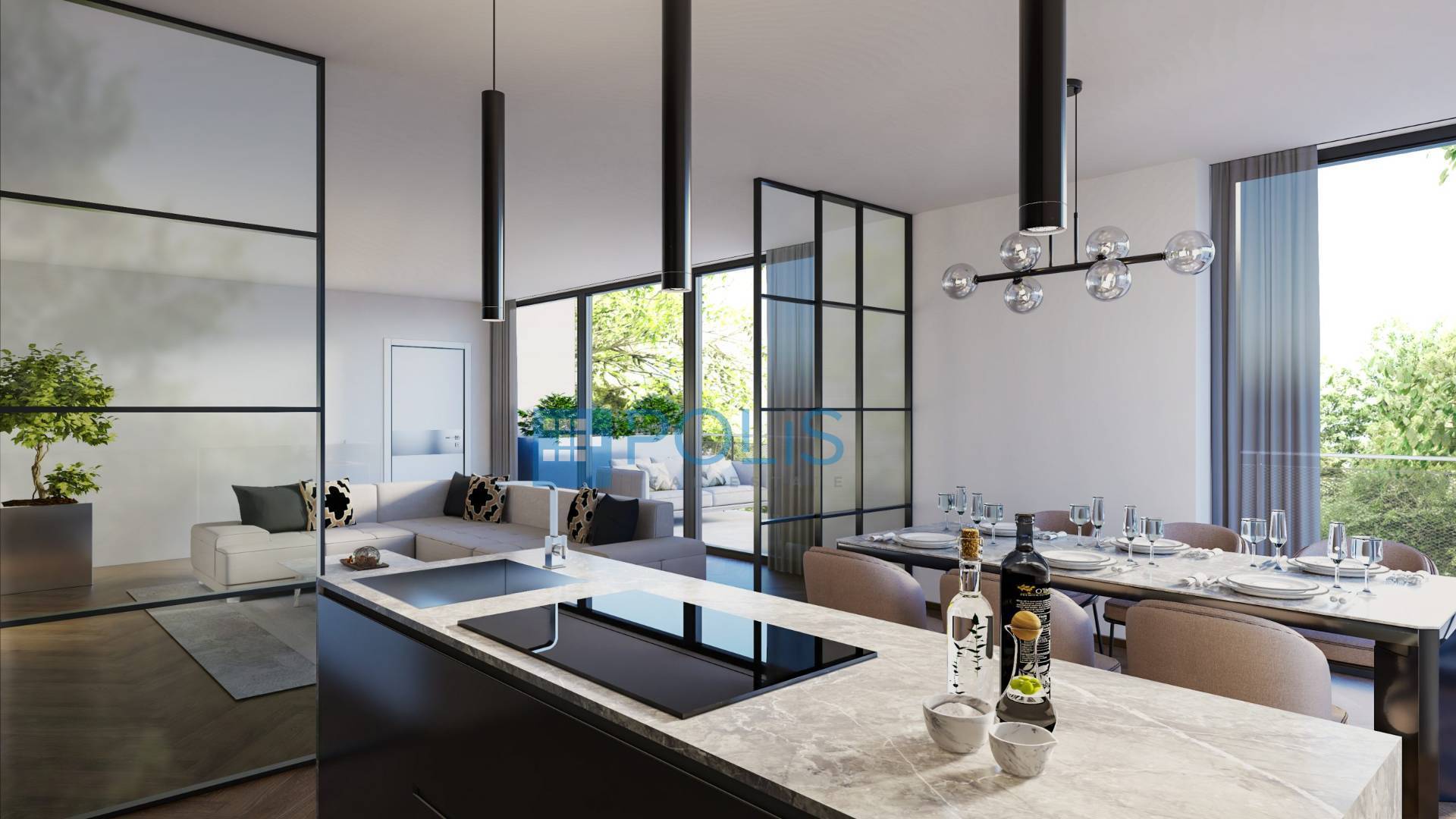 Gli spazi interni sono progettati per garantire comfort, funzionalit ed eleganza: al secondo e ultimo piano: ingresso e ampia zona living luminosa con affaccio diretto sul terrazzo, al primo piano: tre camere da letto e secondo ingresso, tre bagni con finiture di pregio.