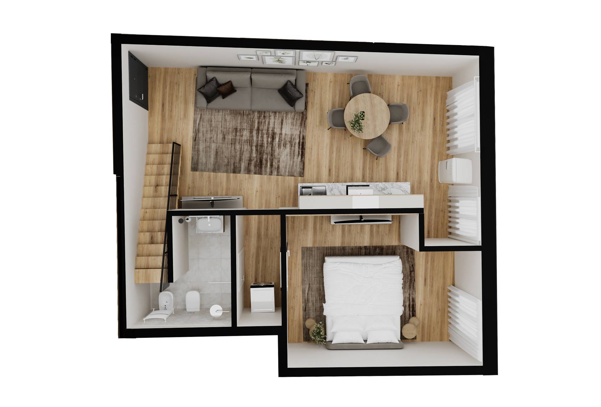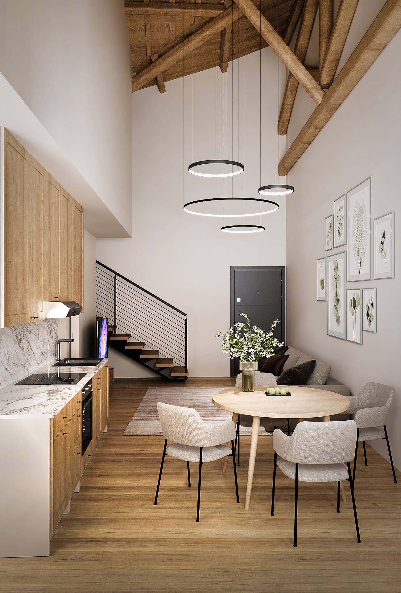 Zona Giorno: Soggiorno luminoso e cucina moderna, perfetti per chi ama la convivialit in spazi aperti e ariosi.