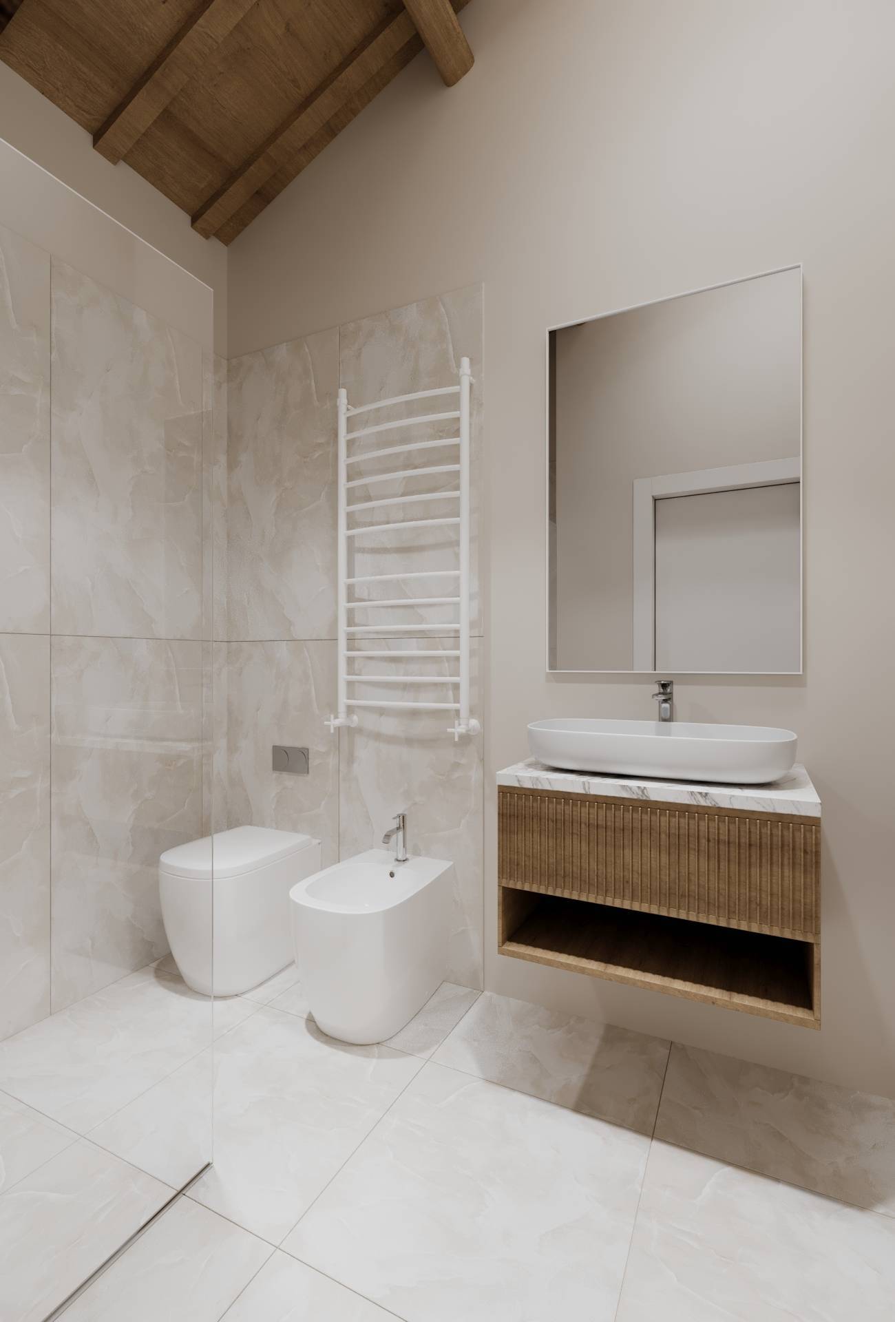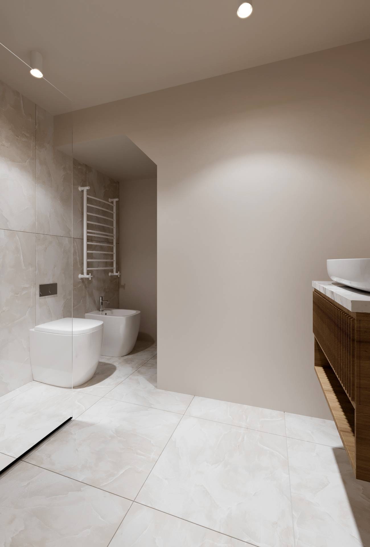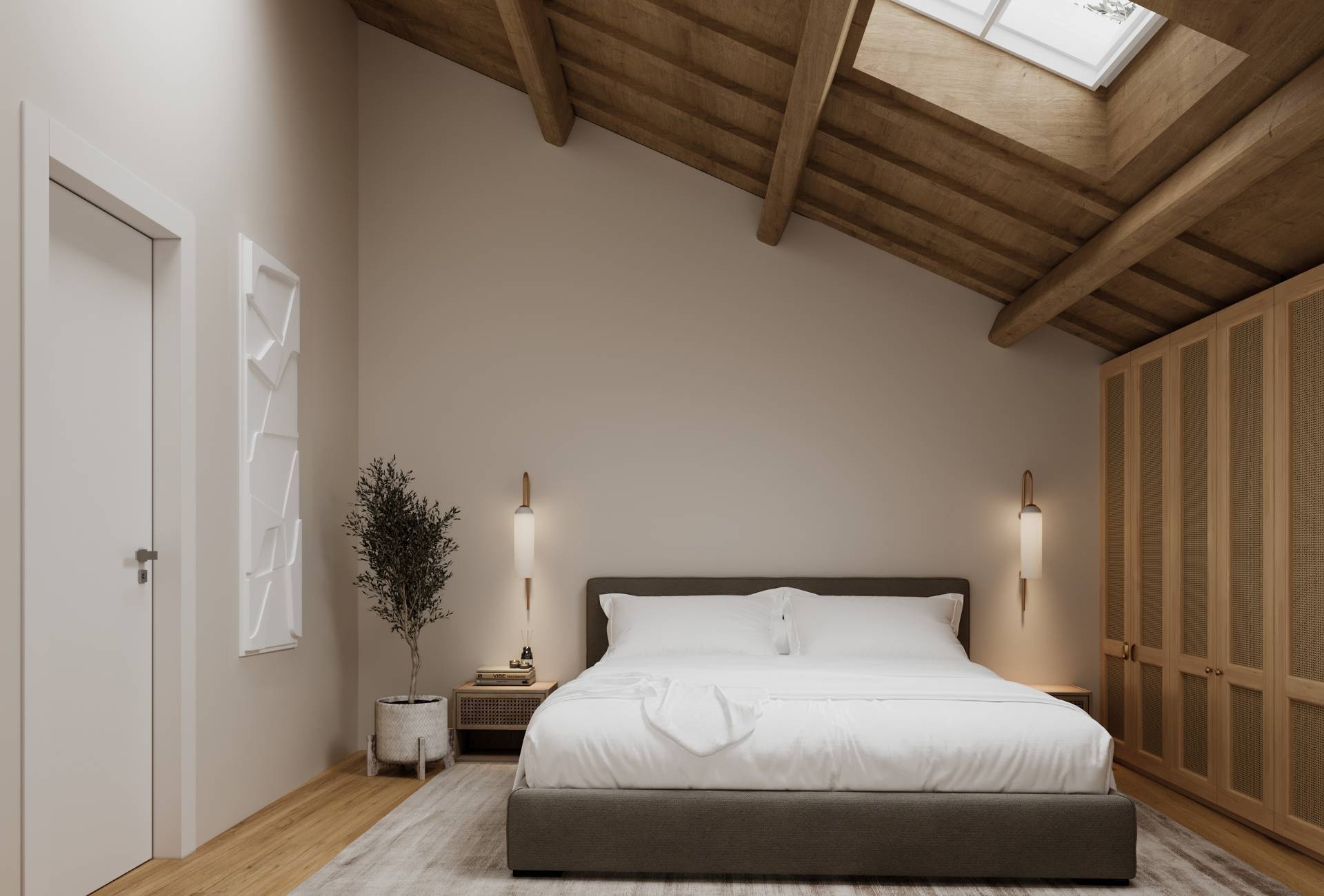 Zona Notte: Due camere da letto matrimoniali ampie e silenziose, progettate come rifugi privati di comfort.