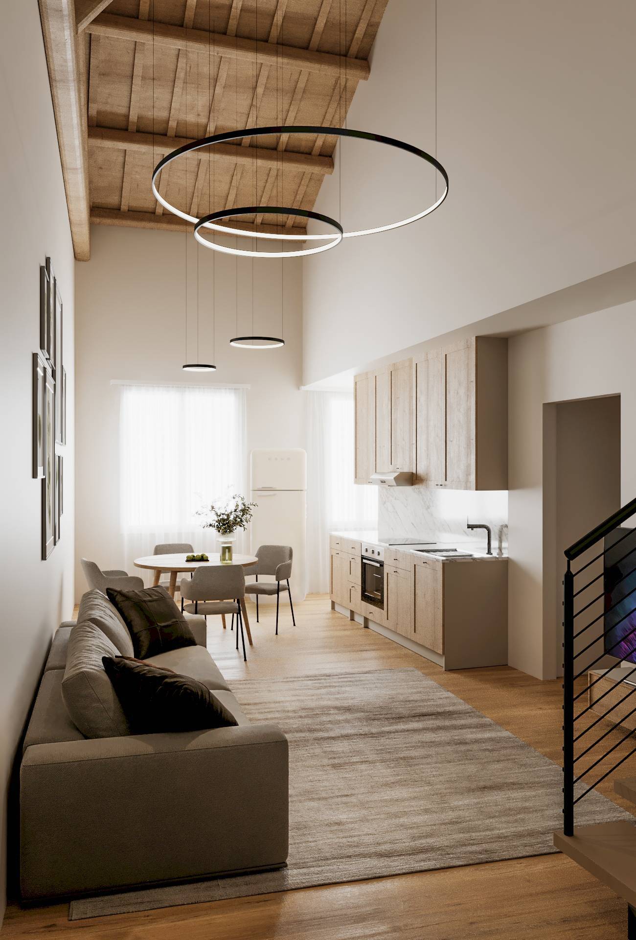 Zona Giorno: Soggiorno luminoso e cucina moderna, perfetti per chi ama la convivialit in spazi aperti e ariosi.