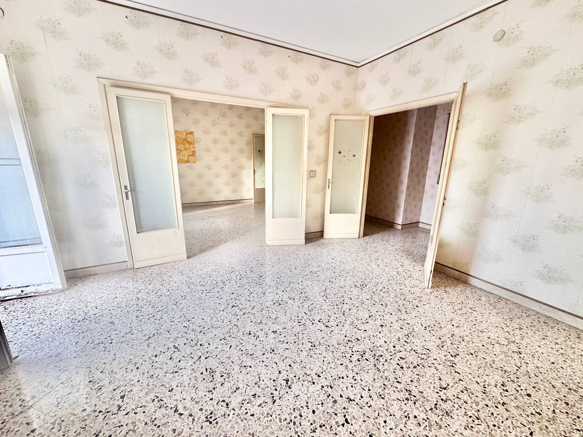 L'appartamento si presenta in discreto stato con pavimentazione in ceramica e scaglie di marmo, infissi in legno e impianti da rifare.