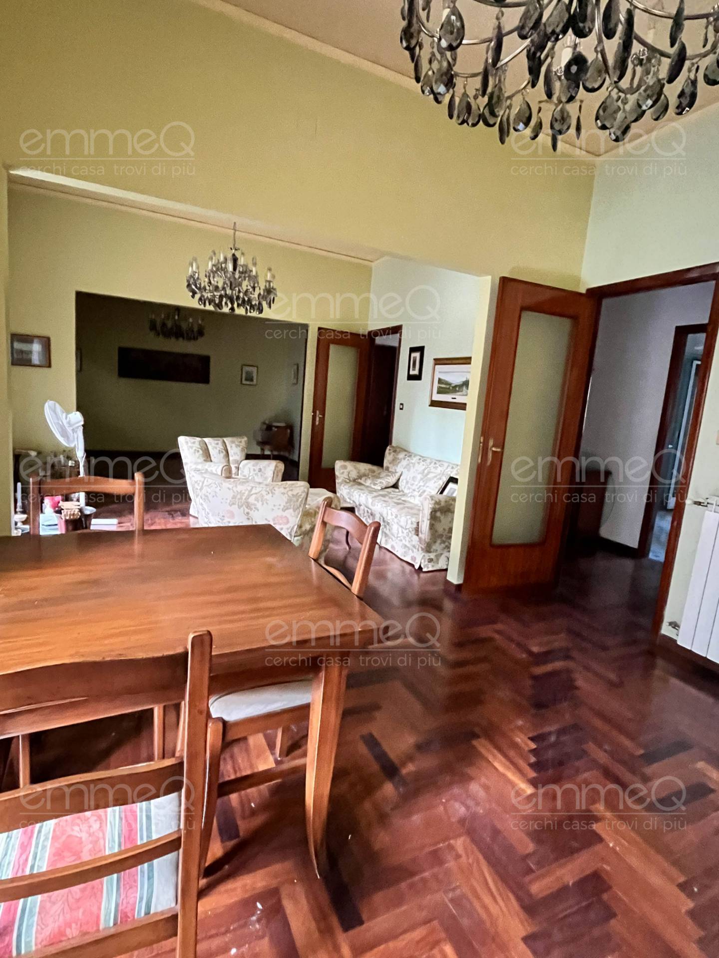 Gli infissi a taglio termico proteggono dal mondo, i radiatori in ghisa scaldano come si deve, i pavimenti alternano parquet, marmo e ceramica come se fosse una partitura pensata per chi ama il dettaglio.