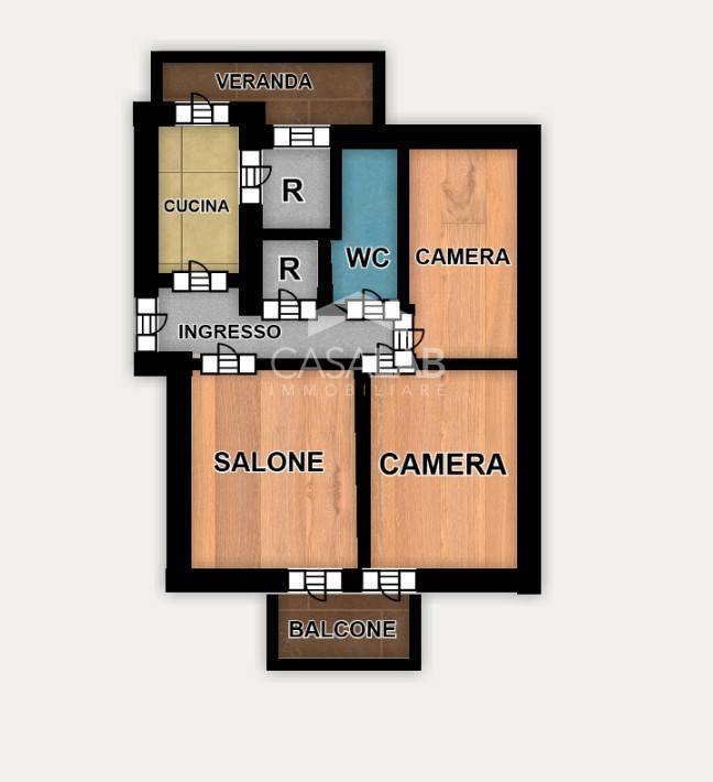 CARATTERISTICHE INTERNE: Ingresso su salone, cucina abitabile con dispensa e veranda, due camere da letto, un bagno recentemente ristrutturato, ripostiglio e balcone.