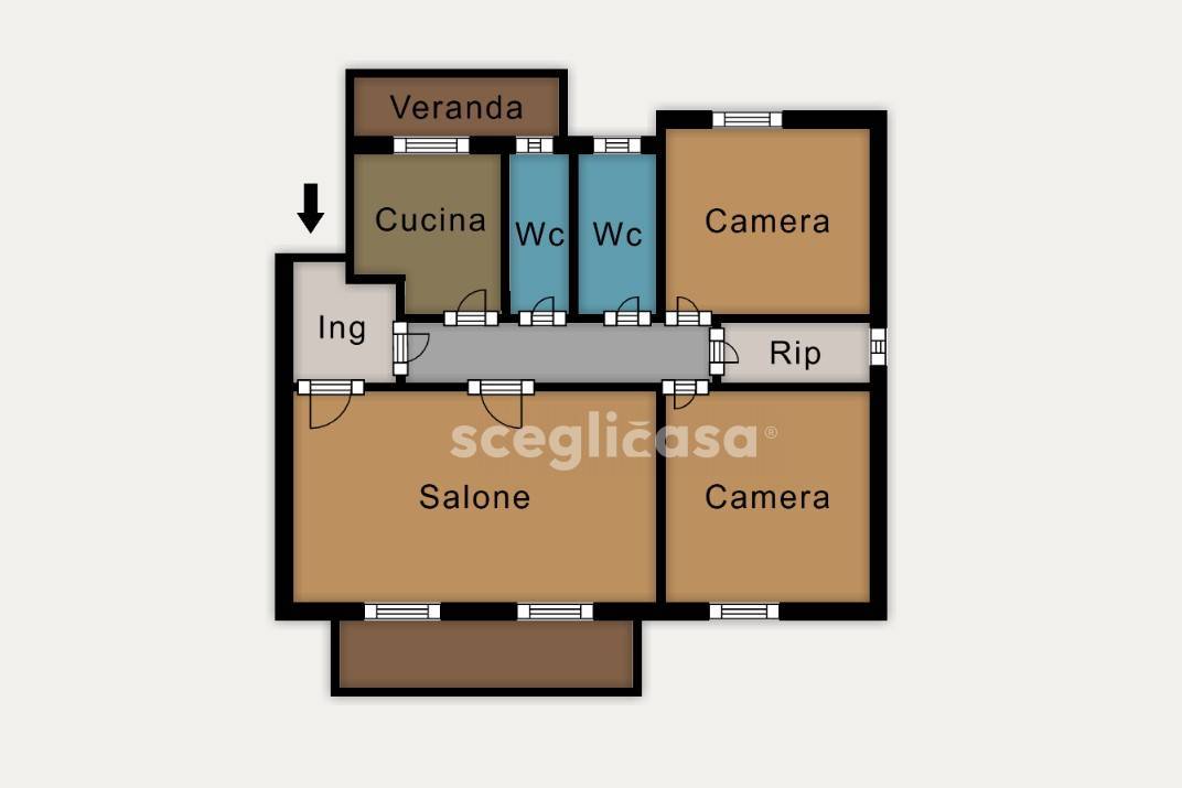 L'immobile ha una metratura interna di 122 mq ed composto da ingresso , salone doppio , due ampie camere da letto , ripostiglio , cucina abitabile con veranda e due bagni.