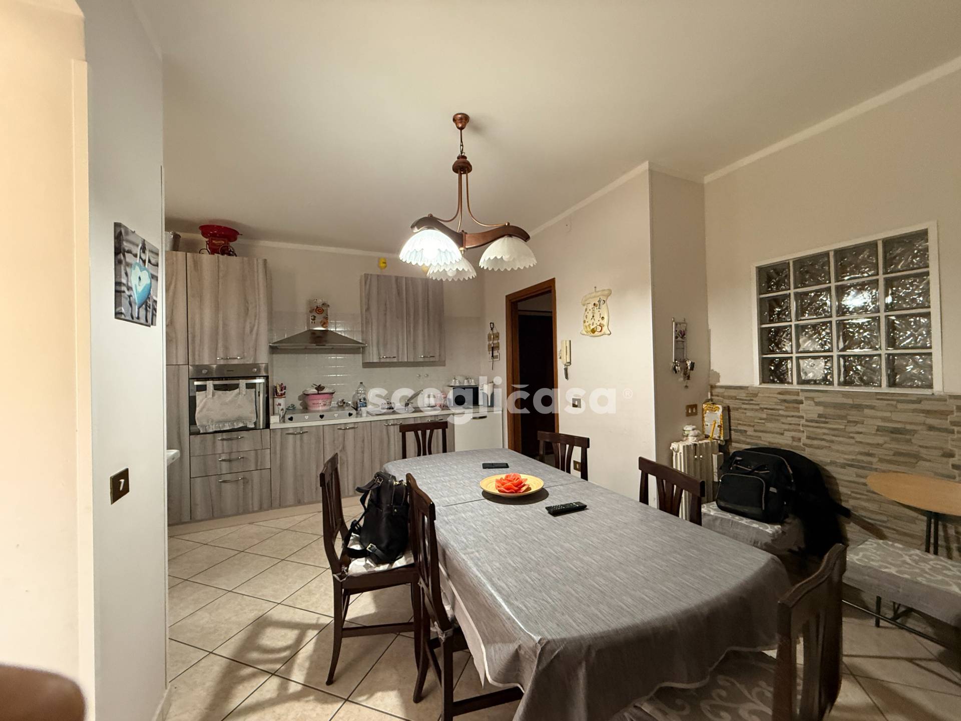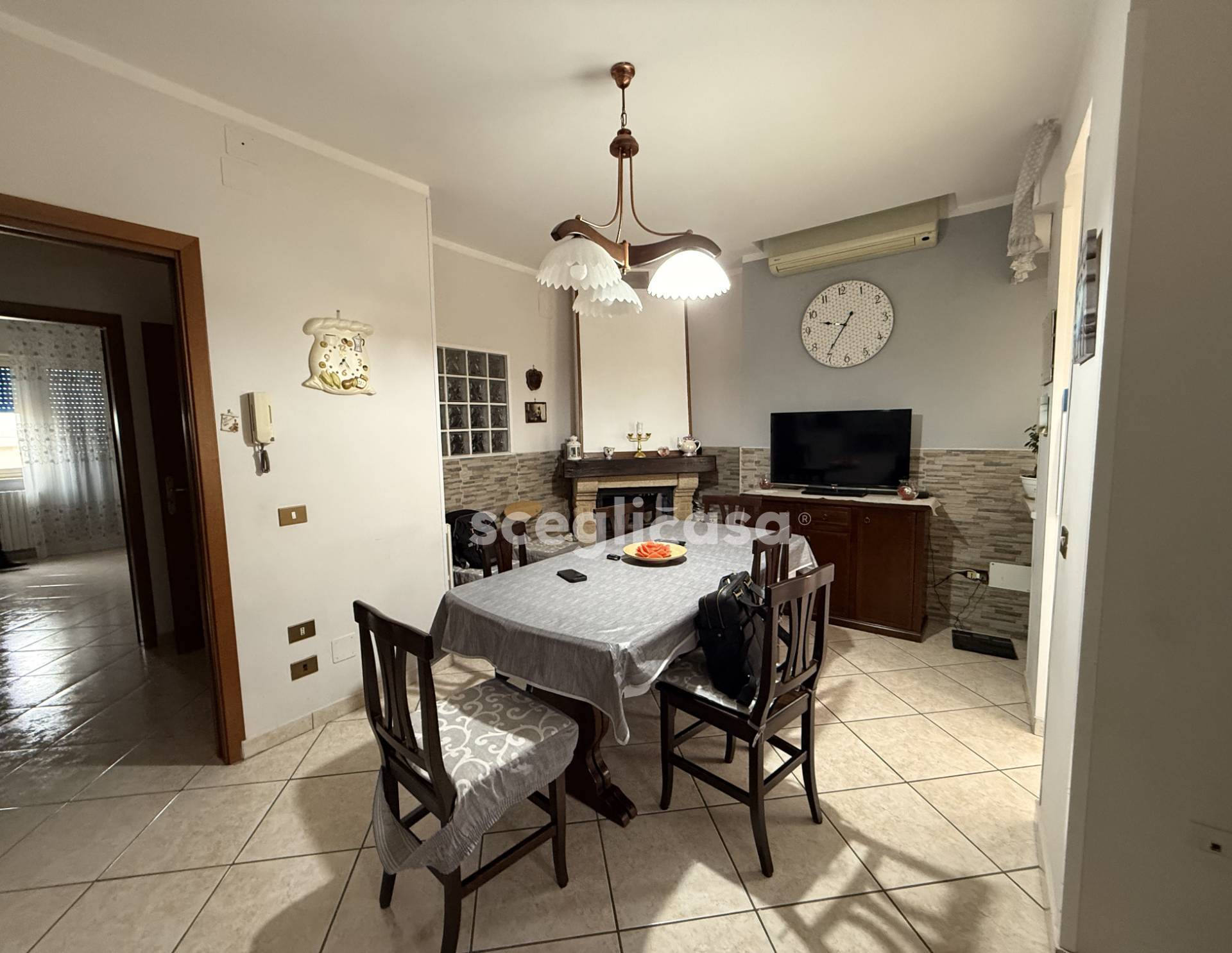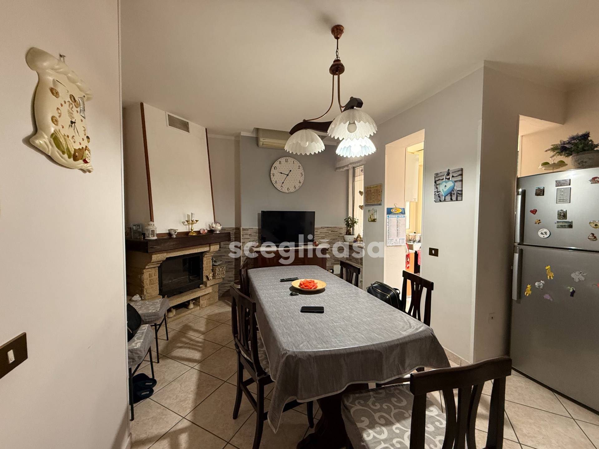 CARATTERISTICHE L'appartamento internamente ha una quadratura di 113mq totali, ed composto da: ingresso su disimpegno, un corridoio che distribuisce in modo ordinato e funzionale tutti gli ambienti della casa, cucina abitabile, arricchita dalla presenza di un camino, con accesso alla veranda, comodo soggiorno, 2 camere da letto matrimoniali, una cameretta con affaccio al balcone.