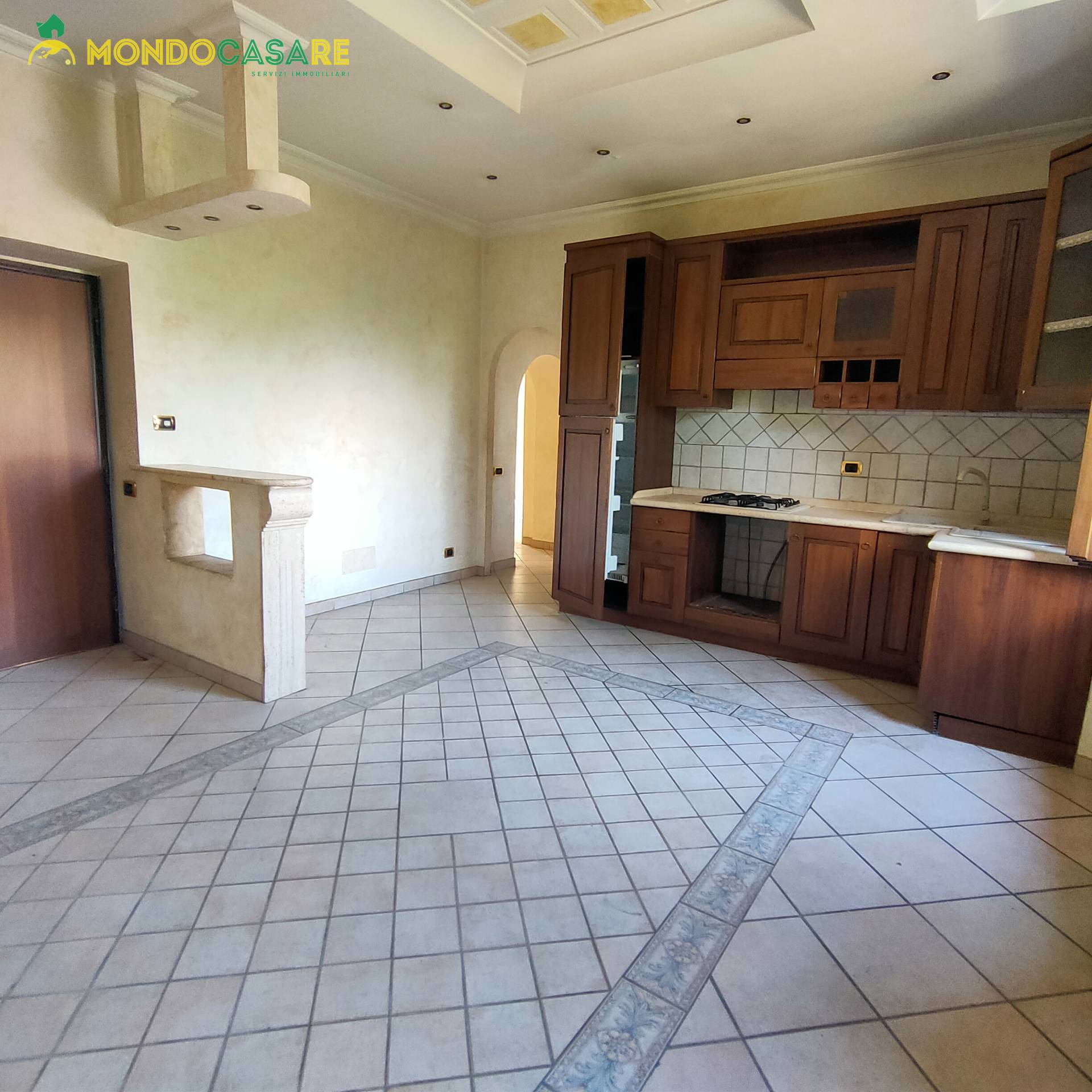 Il salone si presenta perfettamente ristrutturato e finemente rivestito nei particolari da travertino, un camino angolare completa l'eleganza dello stesso, da evidenziare contro soffitto dotato di faretti e decorazioni le quali riprendono i colori caldi adoperati per le rifiniture rendendo elegante ogni stanza.