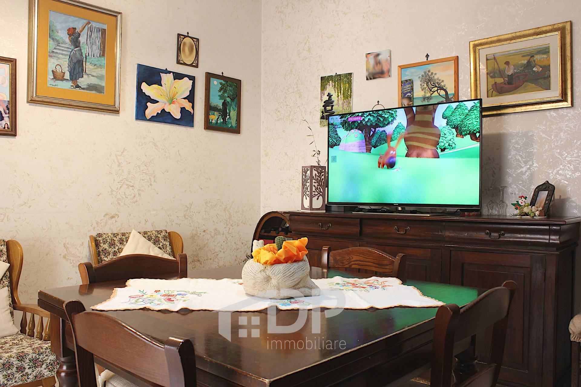 L'interno dell'abitazione composto dal soggiorno con l'angolo cottura con accesso al balcone principale che guarda la sottostante via Trieste.