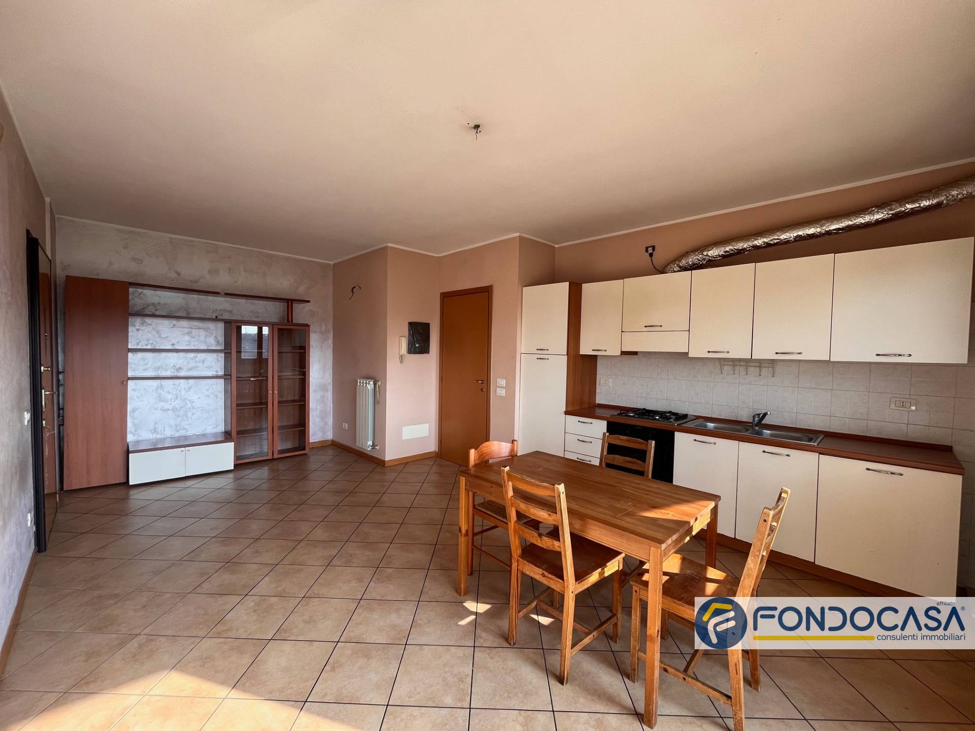 La cucina a vista, mentre sono presenti sia un balcone che un terrazzino.